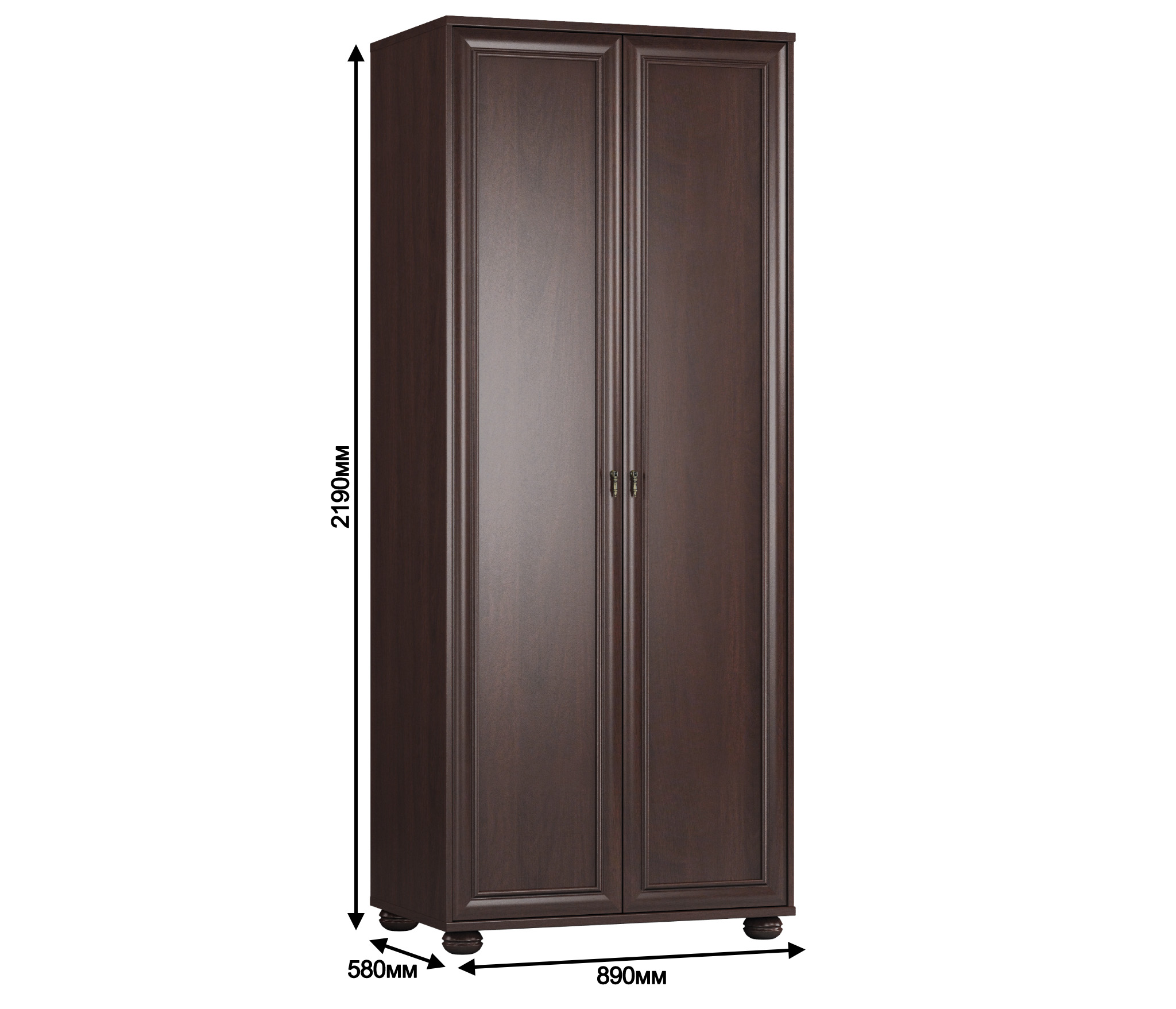 Стильный двухдверный шкаф для одежды. Он отлично смотрится и поможет держать вещи в порядке. В нем есть отделение для вешалок и удобная полка. Качественные механизмы гарантируют, что дверцы со временем не сместятся. У шкафа насыщенный цвет «мара махагон».