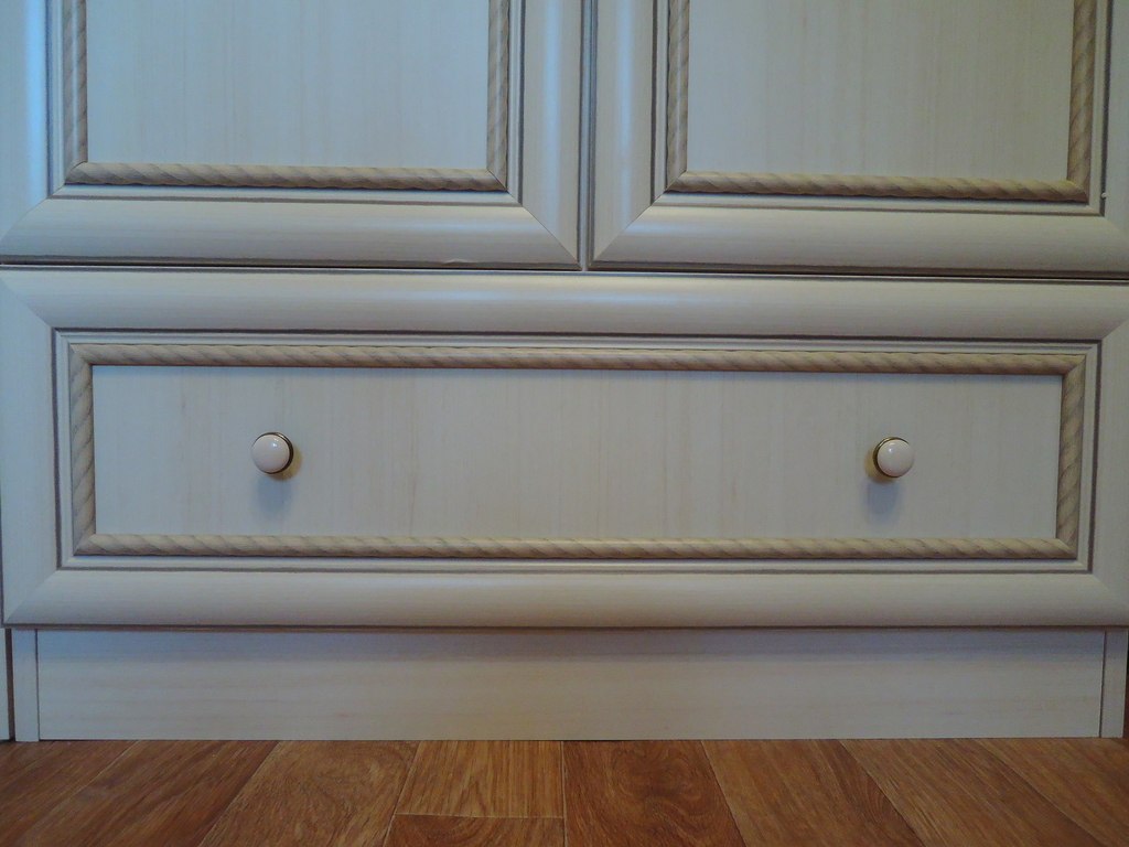 Приятный сливочный цвет притягивает взгляд, хочется смотреть и смотреть. Весь набор мебели (пенал, 2-х дверный шкаф, комод, навесная полка) аккуратно выполнен, имеет один оттенок, поверхности гладкие, не имеют дефектов и сколов. Очень довольна своим выбором.