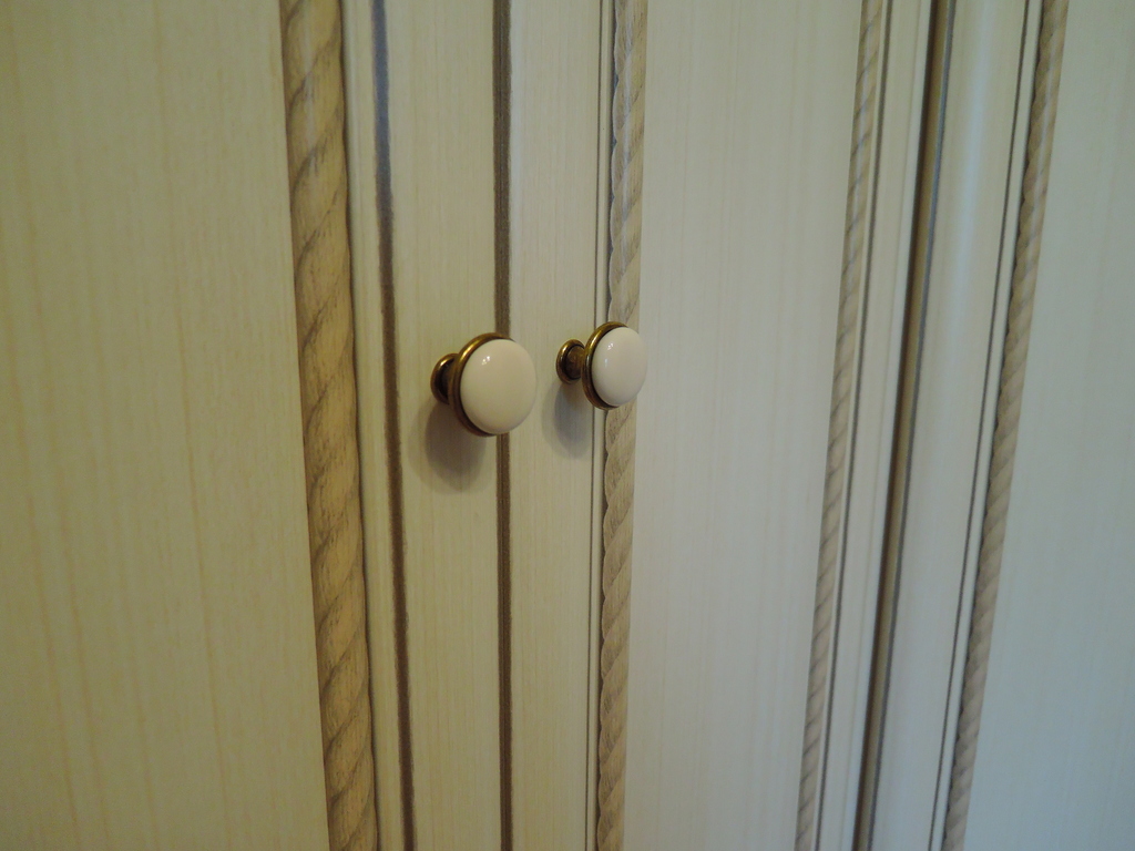 Заказывали два шкафа, один двух- другой четырёх створчатый, на каждом шкафу двери отличаются по отделке, фактически они разные и это заметно! У этого шкафа ручки на разной высоте и отличается отделка у двери, но не так сильно, как у четырёх створчатого. Не знаем, что теперь делать. Ждём кровать из этой же серии, надеемся там всё будет комплектное.