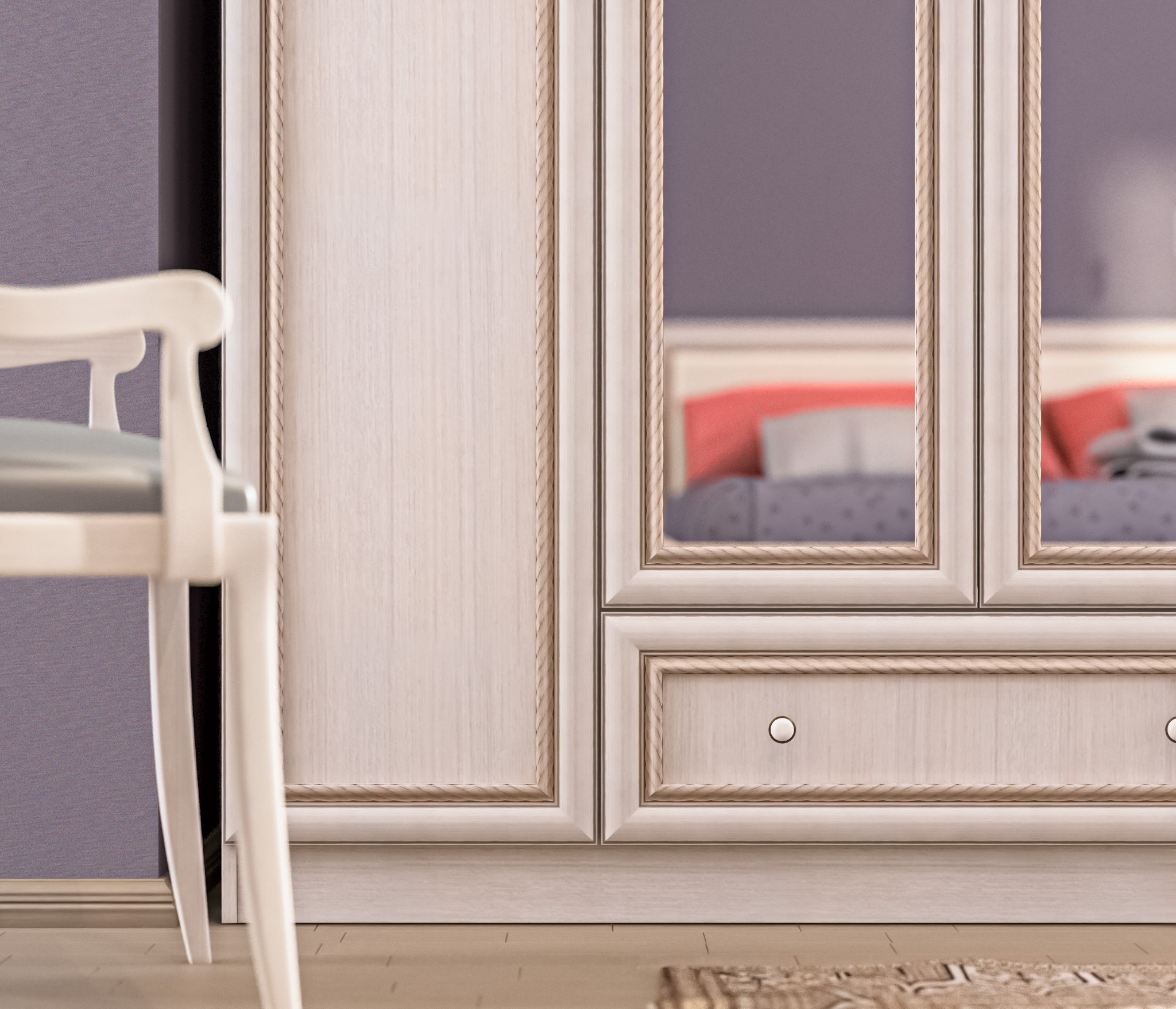 Красивый шкаф, украшает комнату, благодаря светлому цвету не уменьшает ее в размерах. Купили в комплекте с комодом Грация