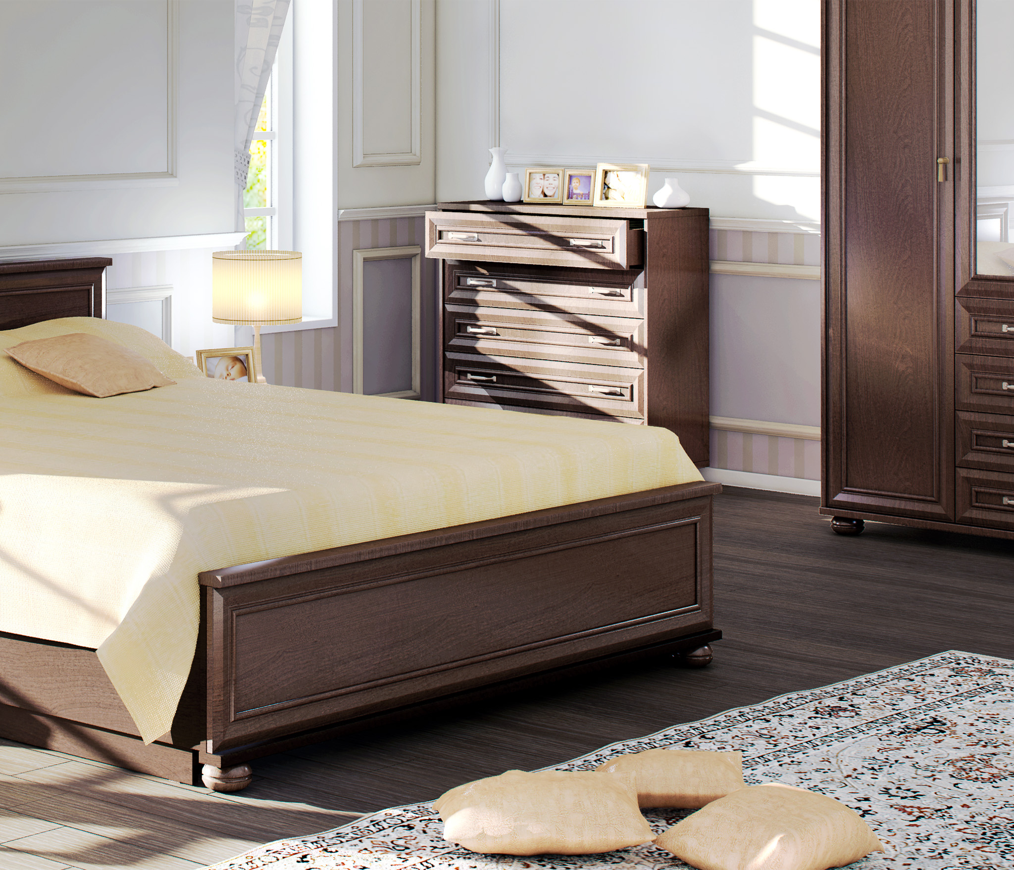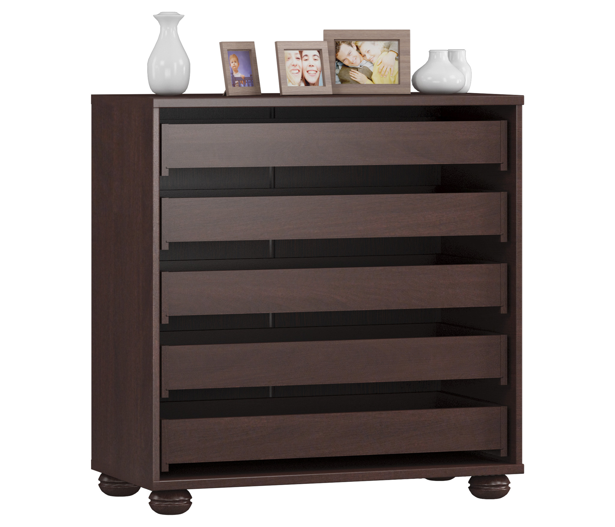Классический комод с пятью ящиками. Комод очень вместительный и отлично подойдет для хранения одежды и аксессуаров. Он выполнен из качественных и экологичных материалов, которые отличаются долговечностью. Цвет комода — глубокий оттенок «мара махагон».