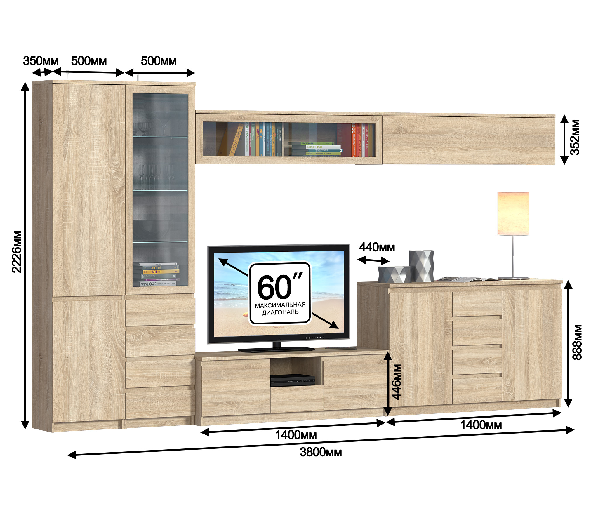 Гостиная Веста Дуб Сонома L-3800 (Дуб Сонома)
