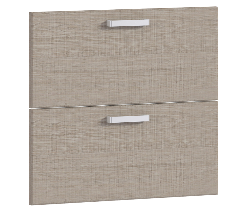 Две панели для ящиков шкафа. Они изготовлены из прочной и экологически чистой прессованной древесины. Панели устойчивы к воздействию воды и пара. Каждая панель дополнена двумя ручками в классическом стиле.