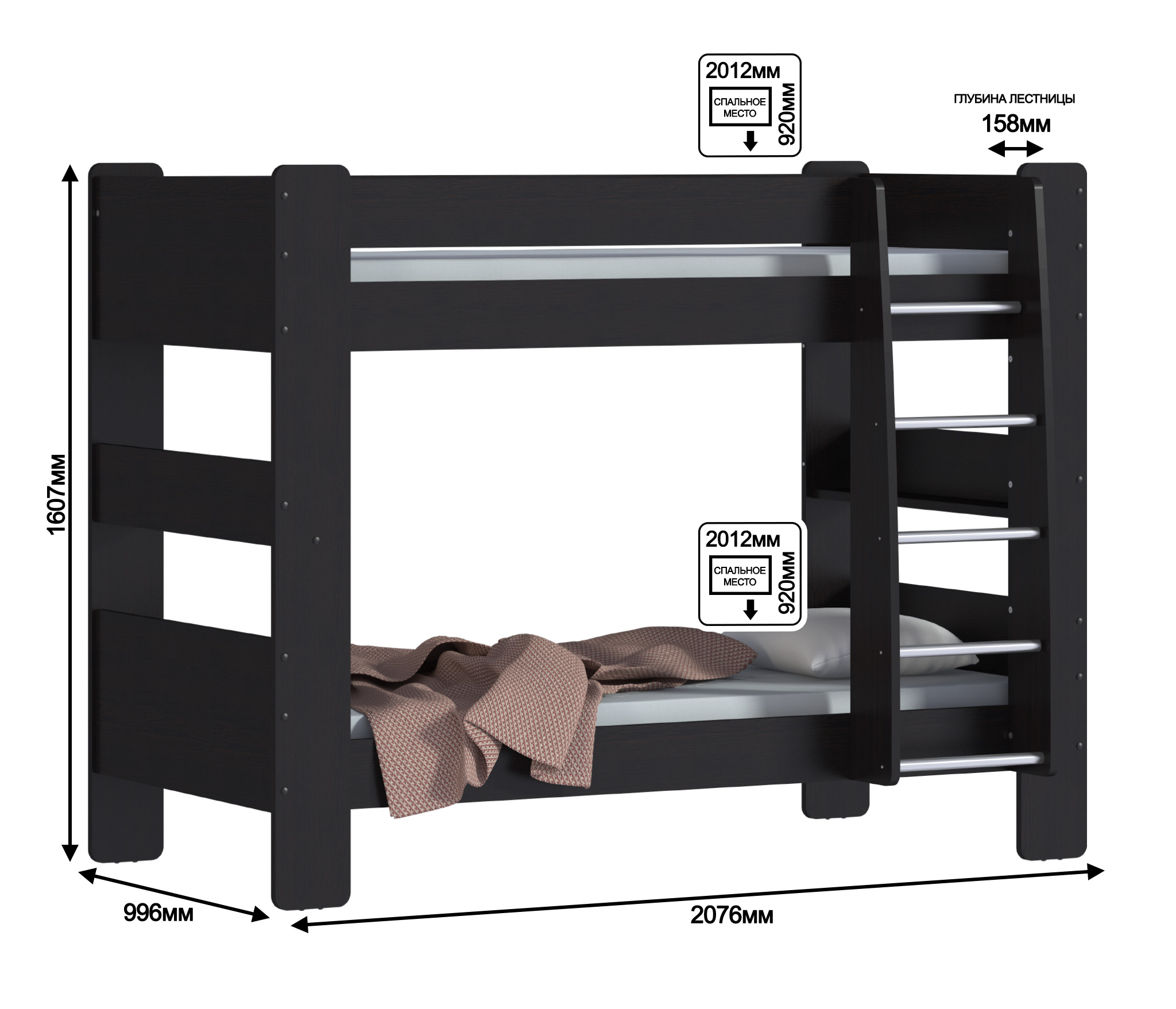 Недоработка конструкторов - на нижнем ярусе не хватает спинки, поэтому кровать можно поставить только к стене.