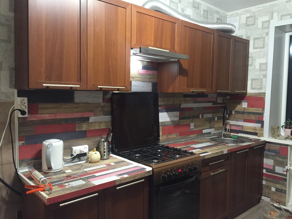 В целом кухней довольны. Вместе с доставкой, подъемом на 8 этаж, сборкой и монтажом (с вырезом под мойку и плиту, но без их установки) все обошлось в 26800 руб.