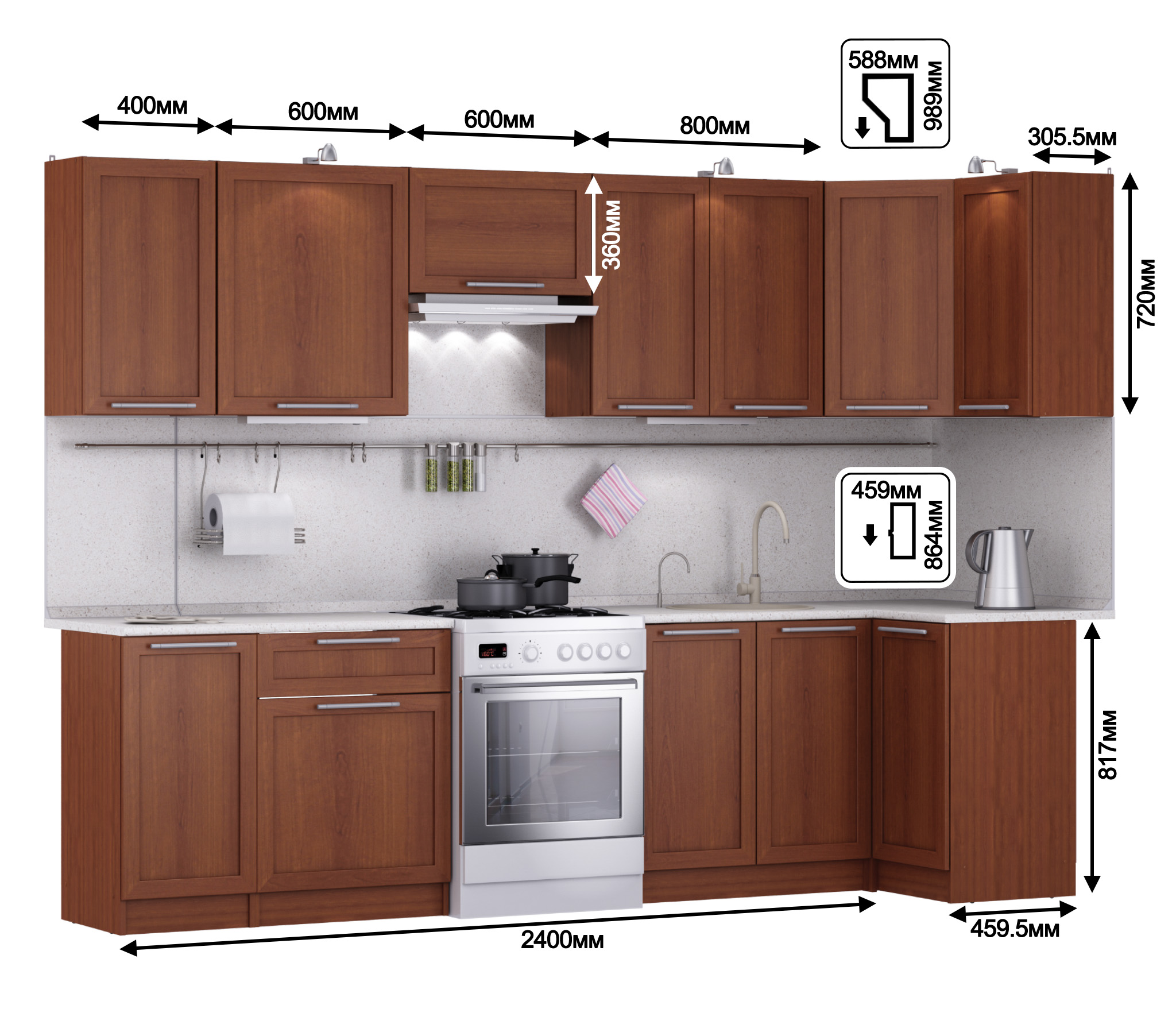 Ангелина-40 Комфорт Кухонный гарнитур Орех ИтальянскийАнгелина-200 Комфорт Кухонный гарнитур Орех Итальянский