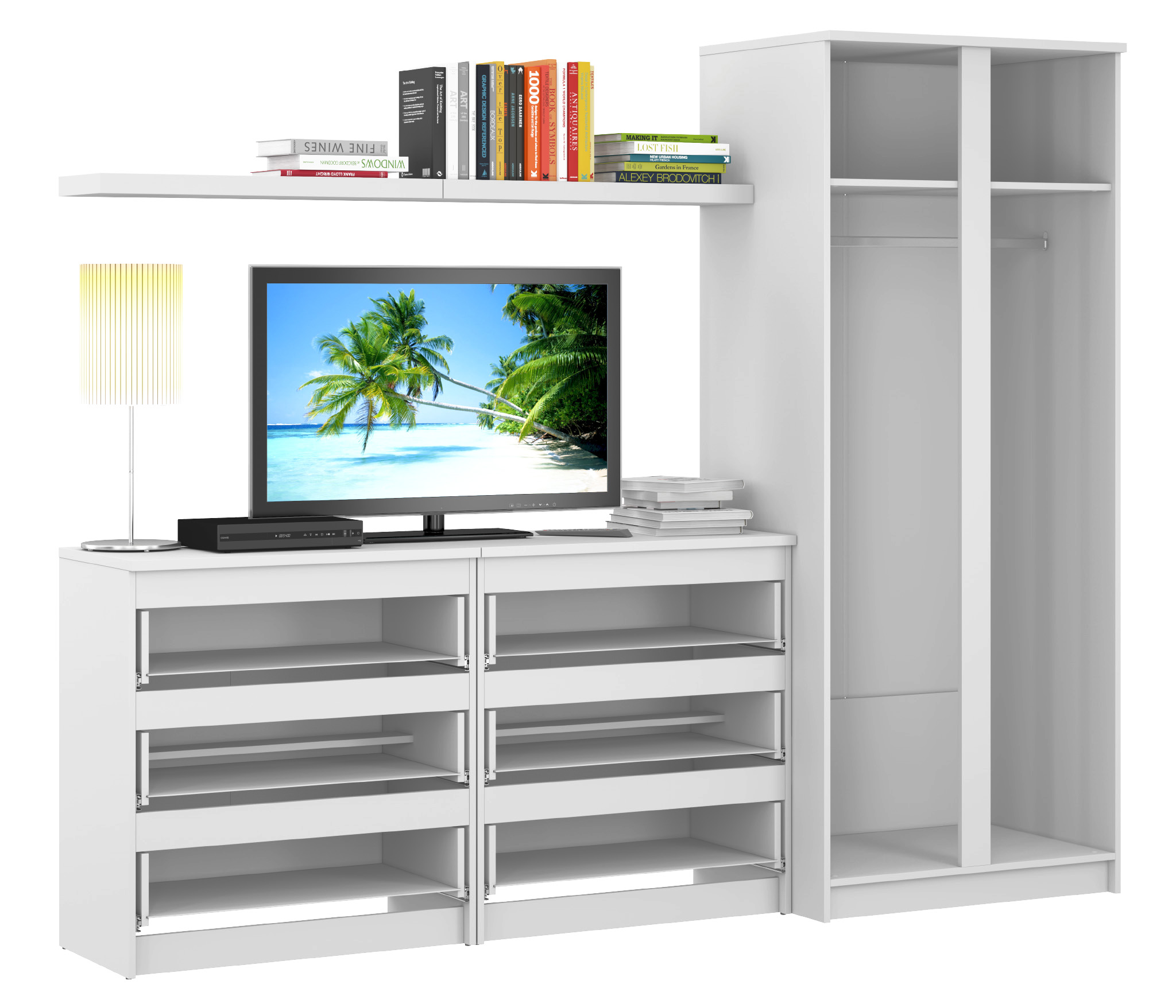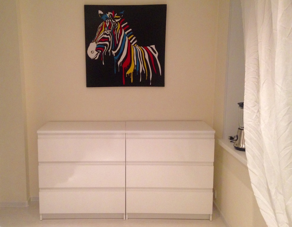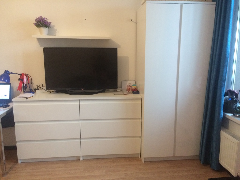 Очень симпатичный комплект. Белоснежный. В комодах очень много места, а в шкаф я поставила дополнительную штангу посередине, удвоив его полезность =)