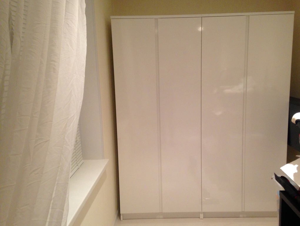 В шкафу по середине перемычка, не очень удобно, когда открываешь шкаф, хватаешься за неё. Лучше бы не было.