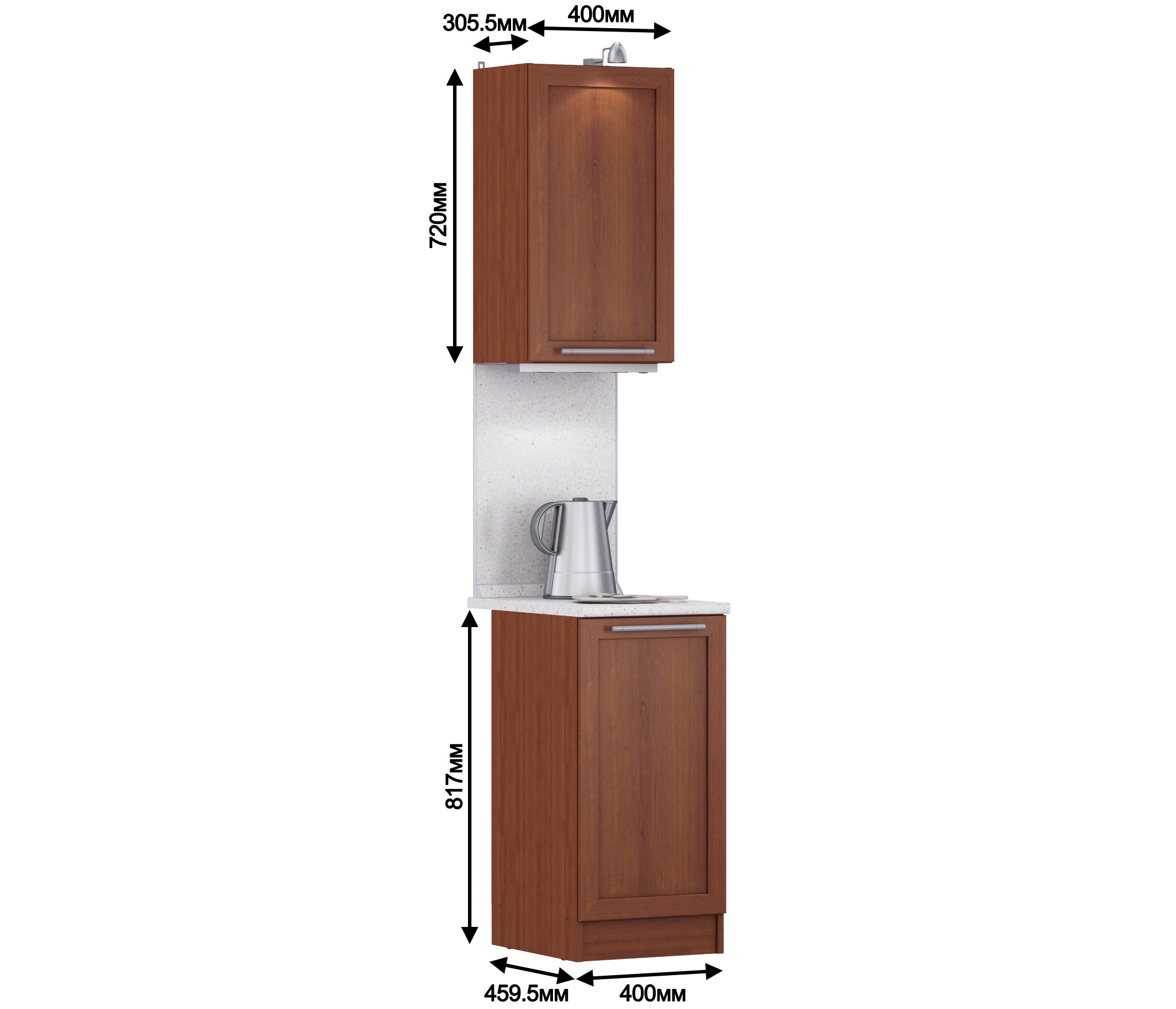 В комплект входит : стол 40см. с распашной дверью и полка 40см. с распашной дверью.