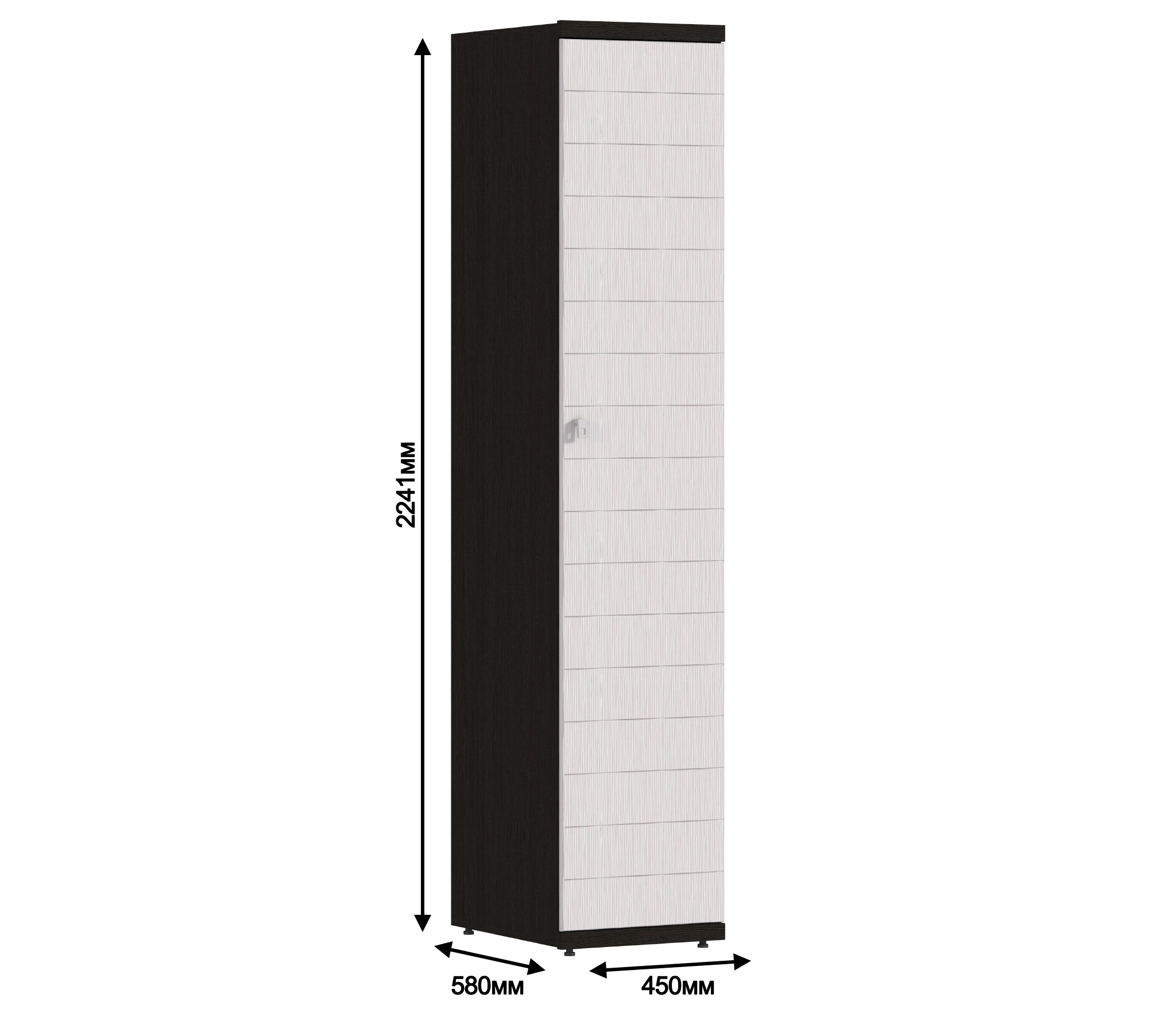 Компактный однодверный шкаф для хранения одежды. В нем шесть вместительных полок. Светлая дверь контрастирует с более темным корпусом.