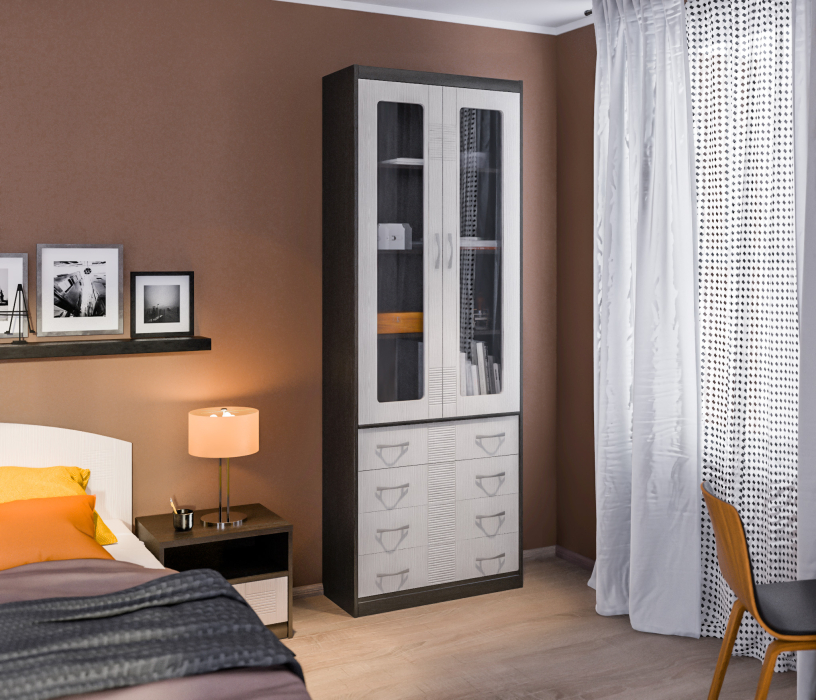 Шкаф-витрина Сити СБ-212 может быть как отдельным предметом мебели, так и частью гарнитура. Минималистичный дизайн шкафа-витрины позволит разместить его в помещении любого назначения – спальне, гостиной, кабинете или прихожей.