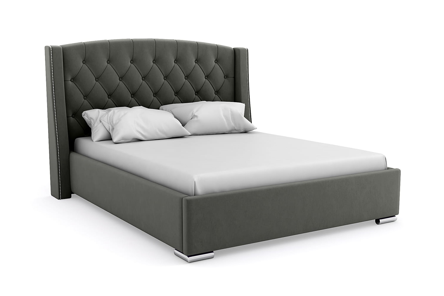 Кровать Баунти Люкс 1600 с ламелями, велюр (велюр 012 серый)