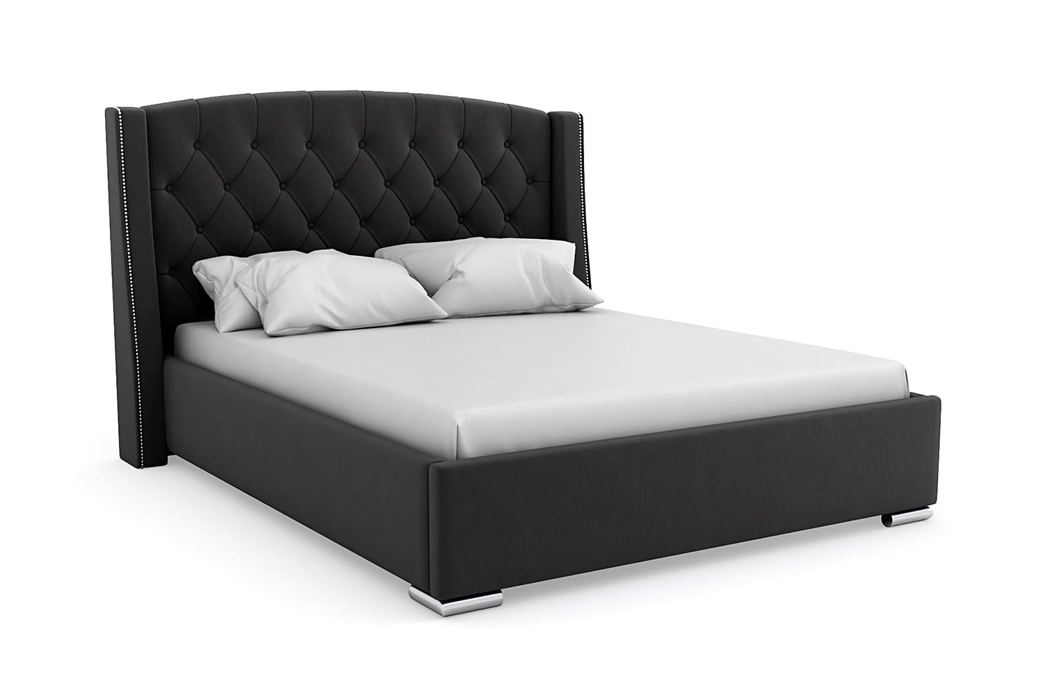 Кровать с ортопедическим основанием Баунти Люкс - изящная интерьерная кровать. Изголовье в каретной стяжке декорировано пуговицами. Кромка украшена лентой из декоративных гвоздиков.