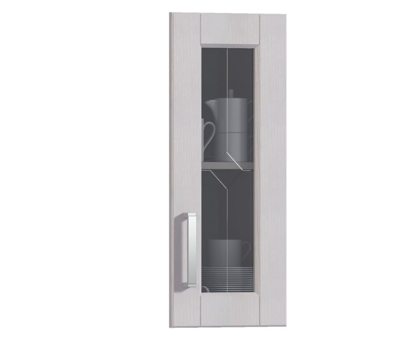 Компактная застекленная дверца для кухонного шкафа. Она открывается справа налево. Она выполнена из качественной прессованной древесины и каленого стекла. Можно выбрать дверцу цвета «дуб Ривер» или «вишня Барселона».