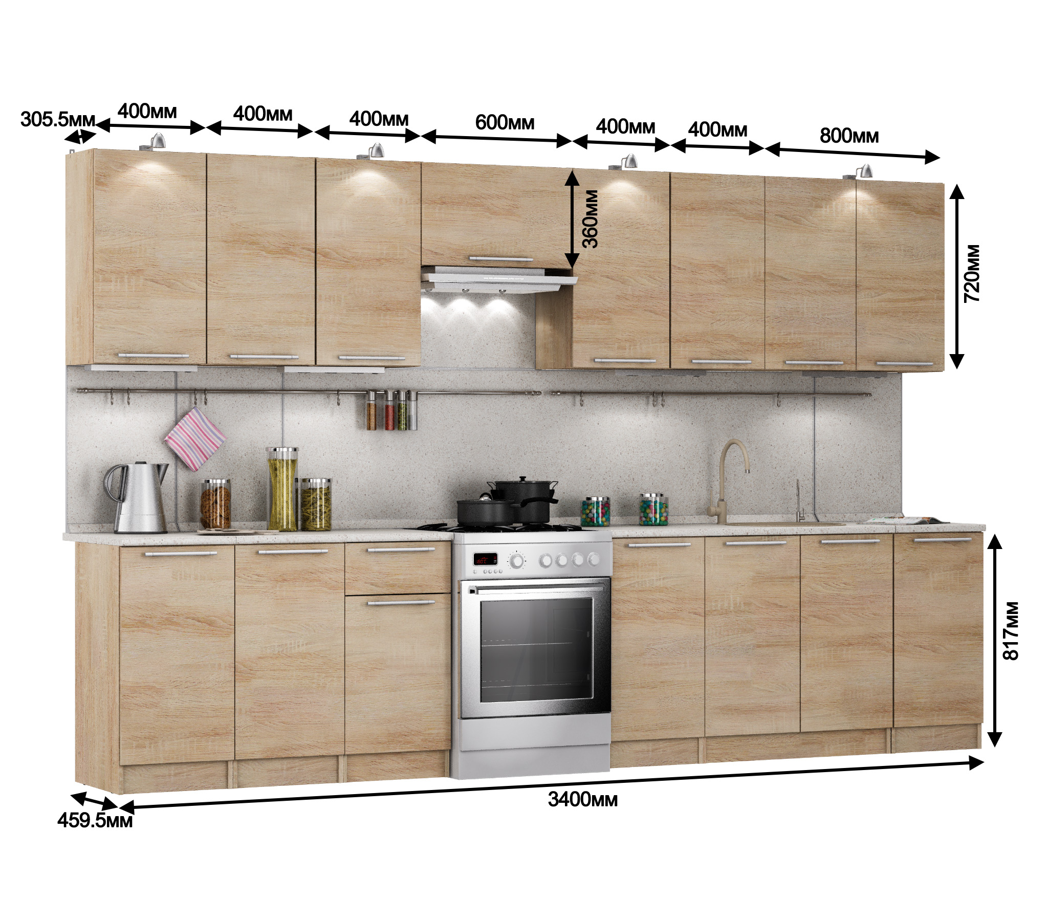 Кухня Ангелина Классик 340 см. (Дуб Сонома)