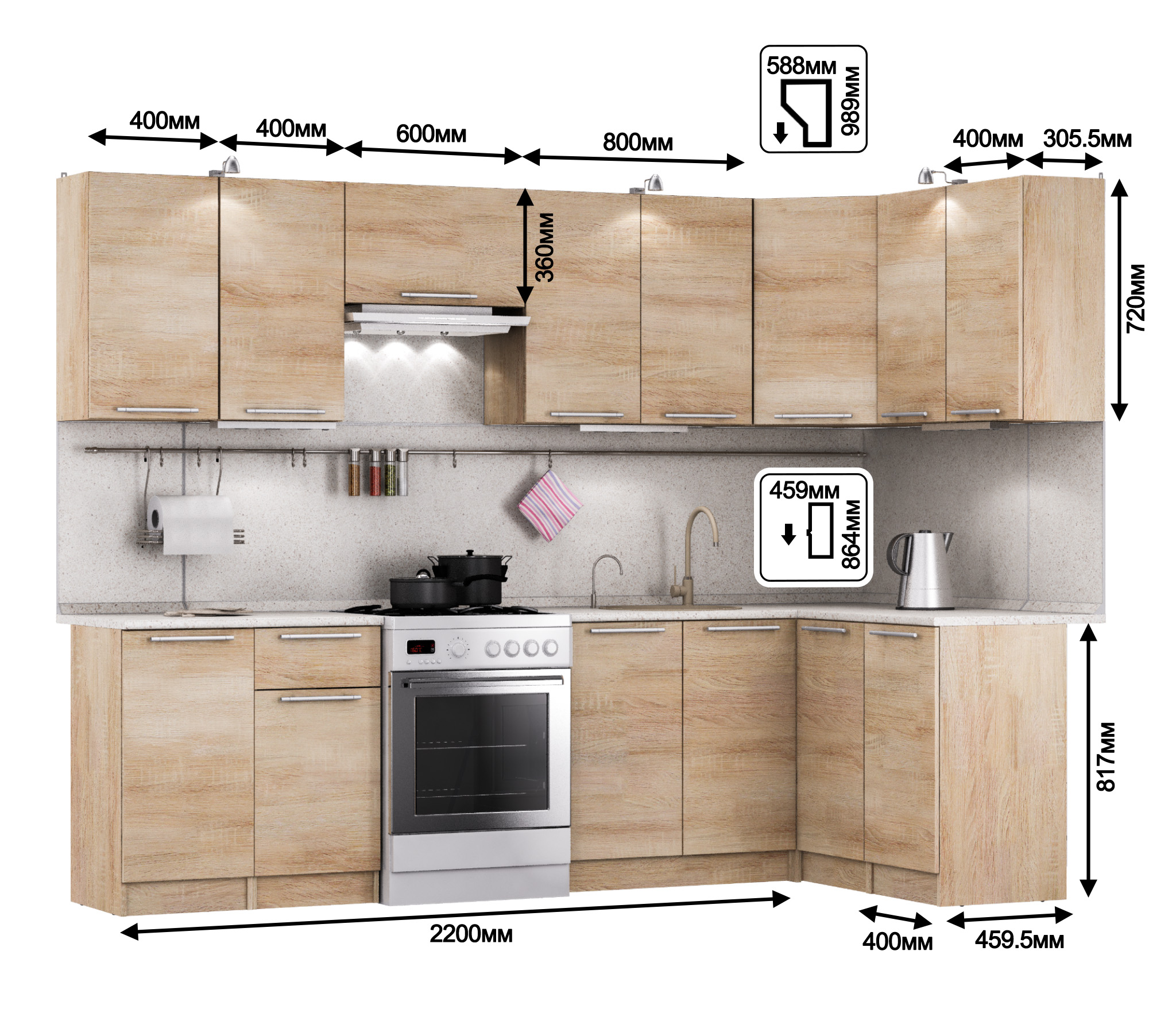 Ангелина угловая Классик Кухонный гарнитур Дуб Сонома