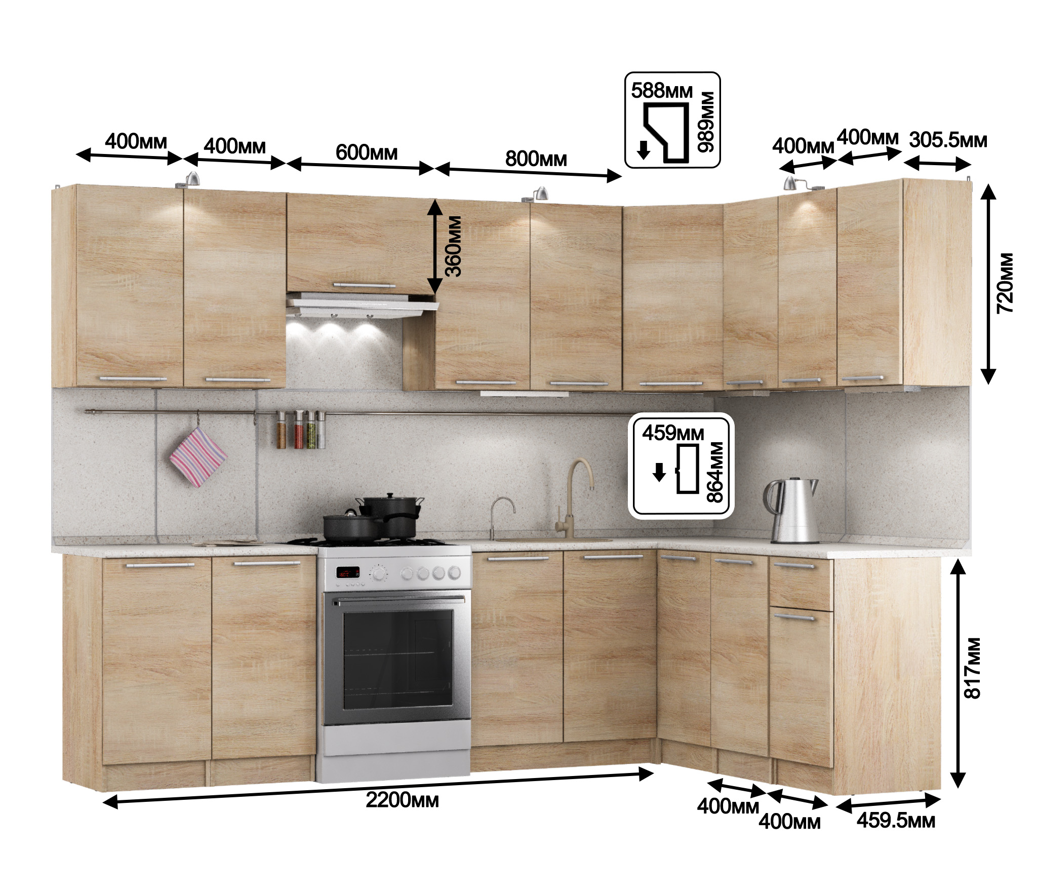Ангелина угловая Классик Кухонный гарнитур Дуб Сонома х1