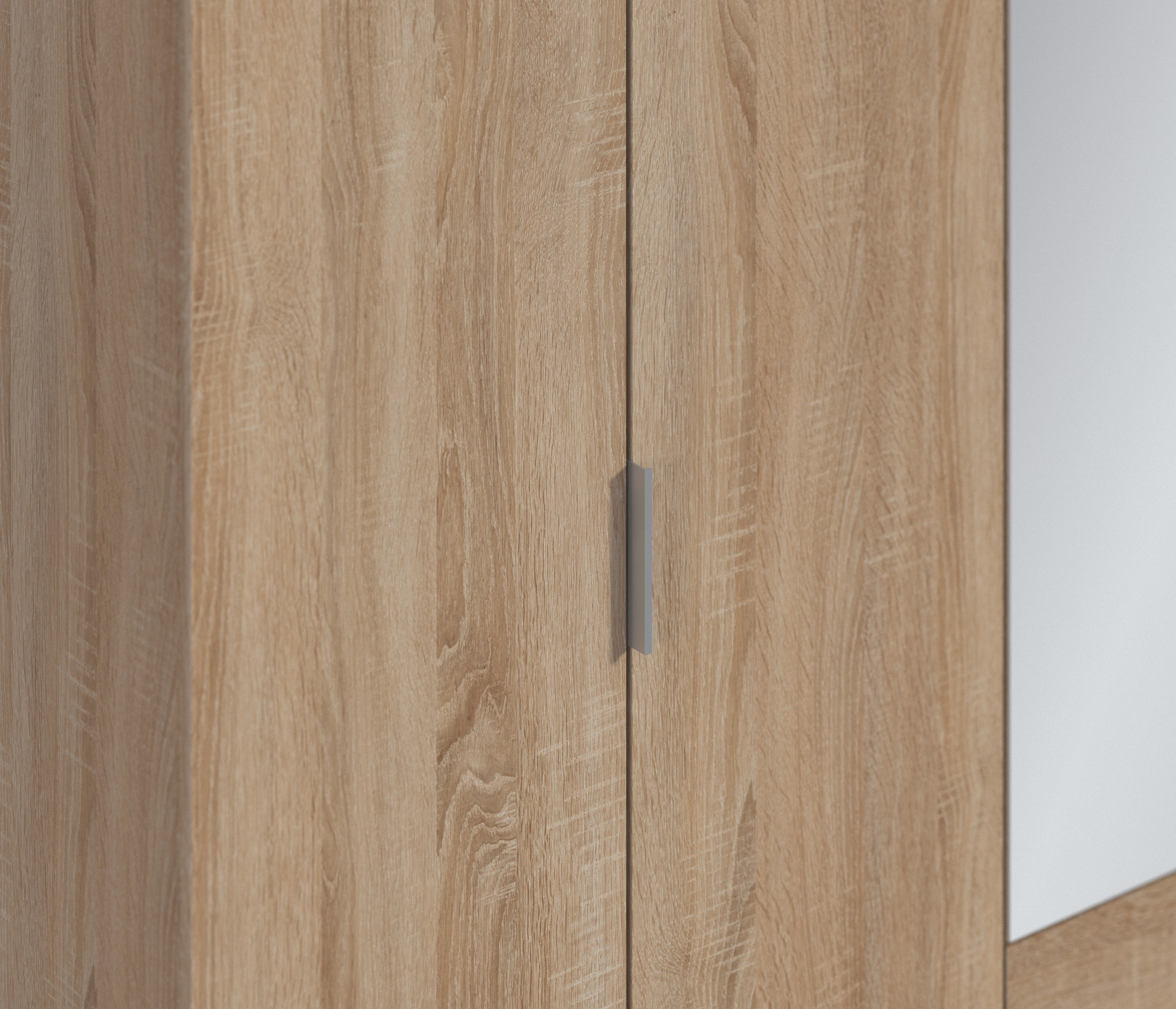 Шкаф «Николь СБ-2593» - высокий, большой, вместительный. Строгие и сдержанные формы, отсутствие броских деталей делает шкаф универсальным для большинства стилистических решений в оформлении интерьера. Шкаф оборудован двумя зеркалами, что способствует визуальному увеличению пространства в помещении. Зеркальные фасады придают модели особого шарма и изящества. Такой стильный и практичный предмет мебели сделает ваш дом уютным и современным. Цвет, в котором изготовлен шкаф – дуб сонома, отлично подойдет для интерьеров в любом цветовом решении. Полки и штанги входят в комплект. Можно дополнить мебелью из коллекции Кито, Веста, Берлин, Клео, Дионис.