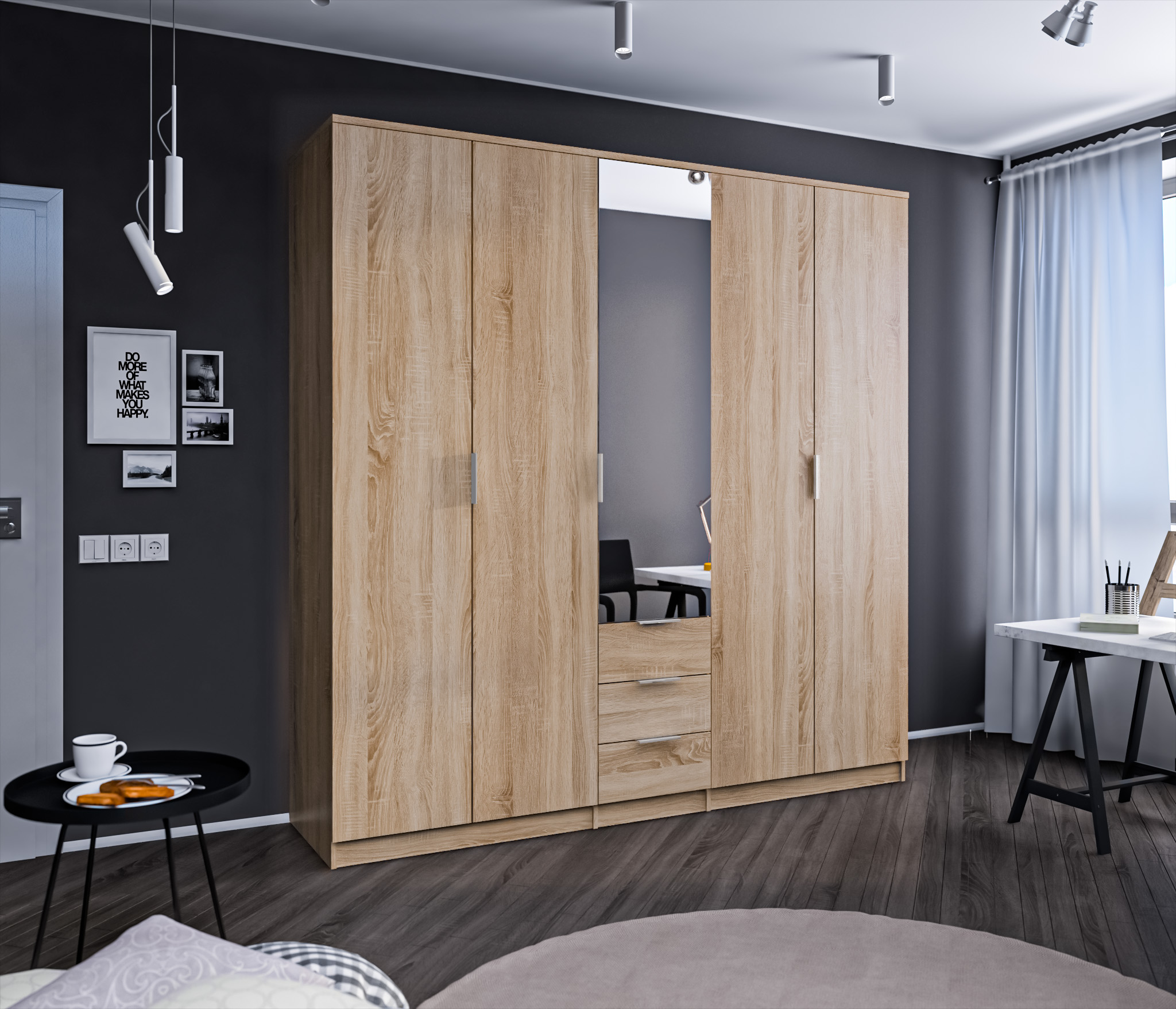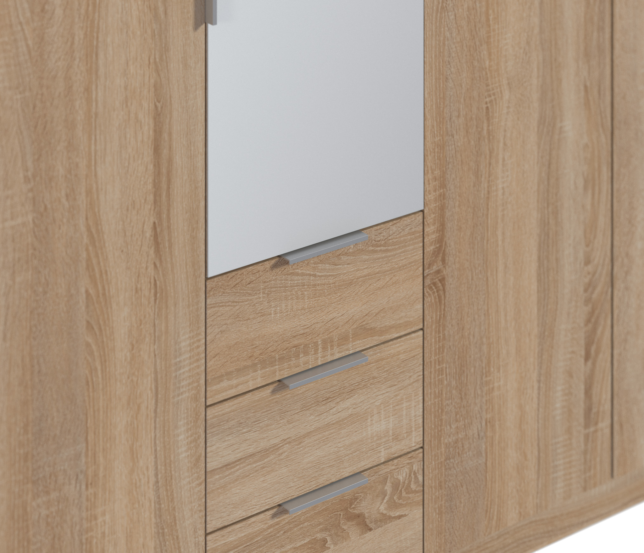 Шкаф «Николь СБ-2594» - высокий, большой, вместительный. Зеркало на фасаде придает сдержанную элегантность. Значительные габариты позволяют разместить большое количество необходимых вещей. Дверцы и ящики оборудованы тонкими и удобными ручками. Оригинальность модели обеспечивается за счет светлого цветового оформления. Шкаф гармонично сочетает в себе стильный внешний вид и способность правильно организовать пространство в комнате. Цвет, в котором изготовлен шкаф – дуб сонома, отлично подойдет для интерьеров в любом цветовом решении. Шкаф оборудован зеркалами, выдвижными ящиками. Полки и штанги входят в комплект. Можно дополнить мебелью из коллекции Кито, Веста, Берлин, Клео, Дионис.