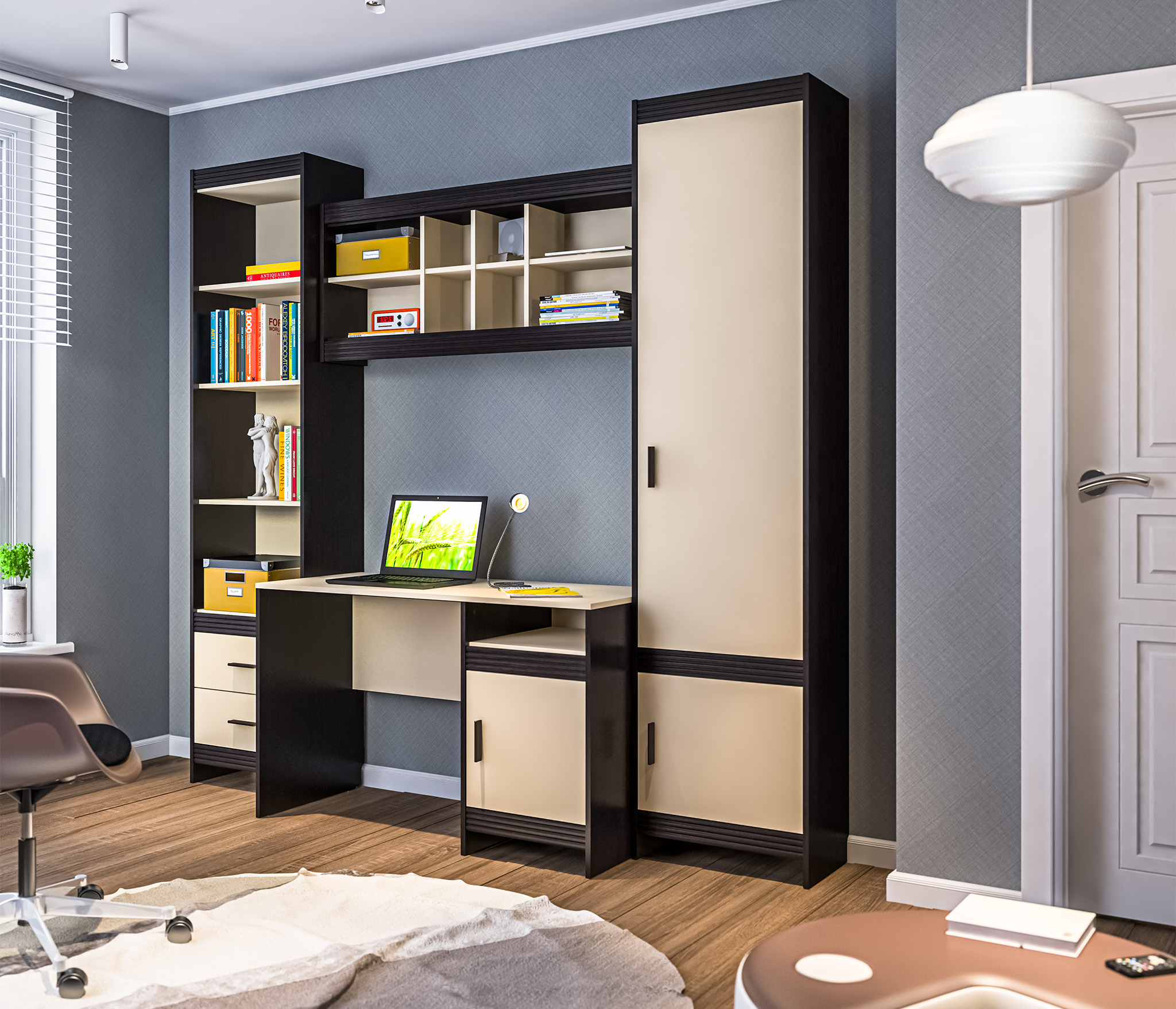 Малогабаритный, но достаточно вместительный шкаф с 5 полками. Важно, что он с дверцами. Прост в сборке. Удачное сочетание цвета венге и ваниль.