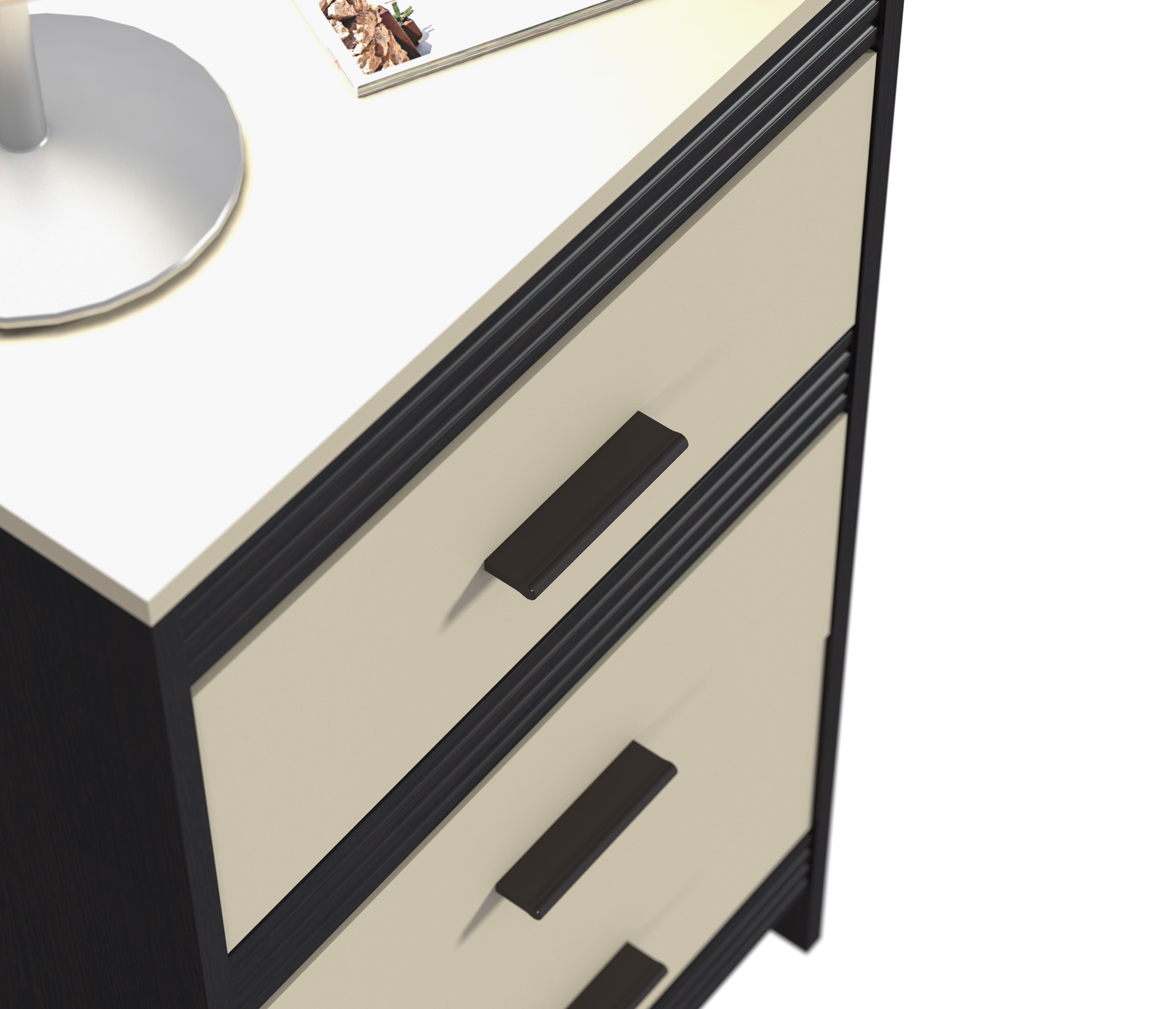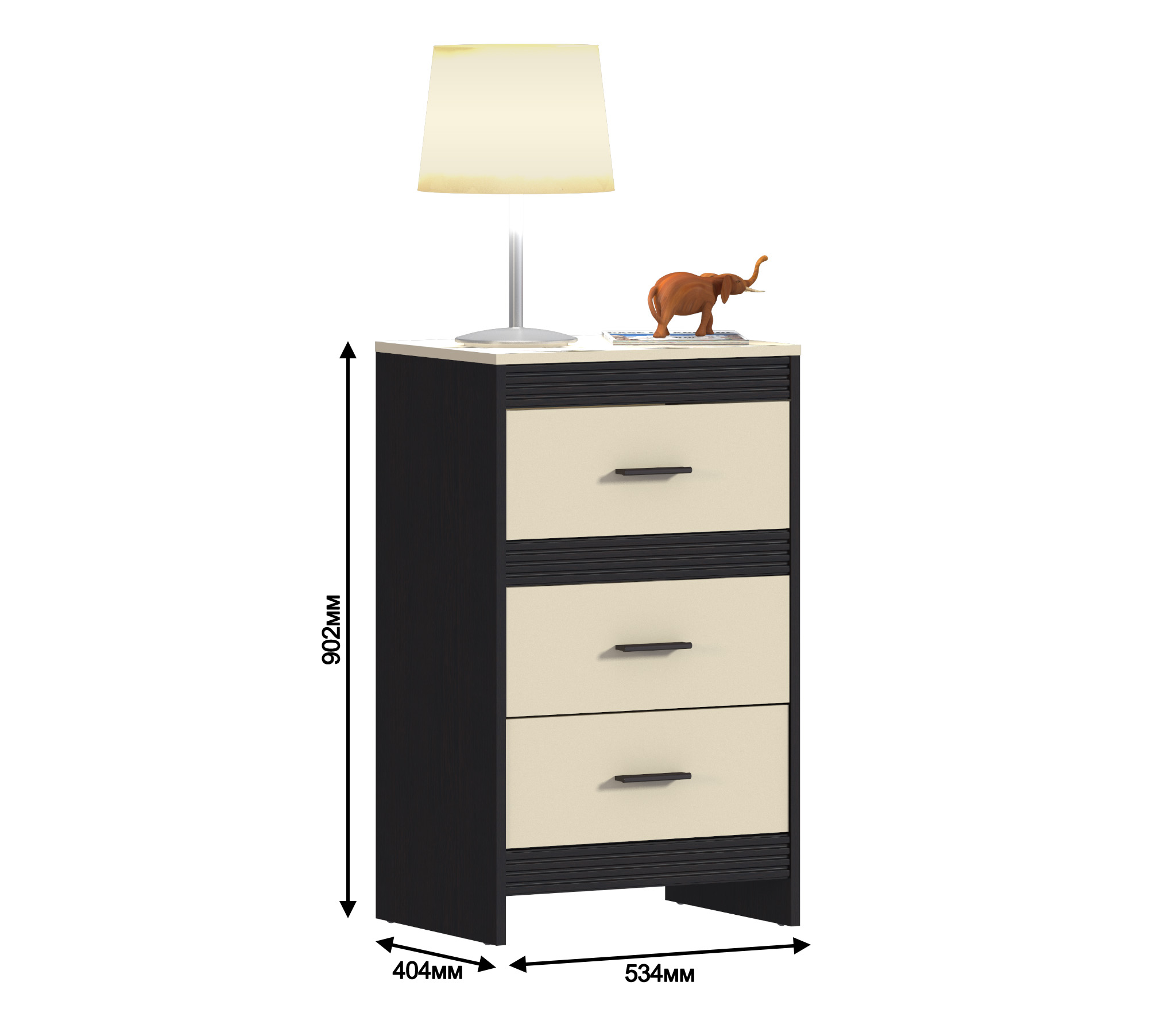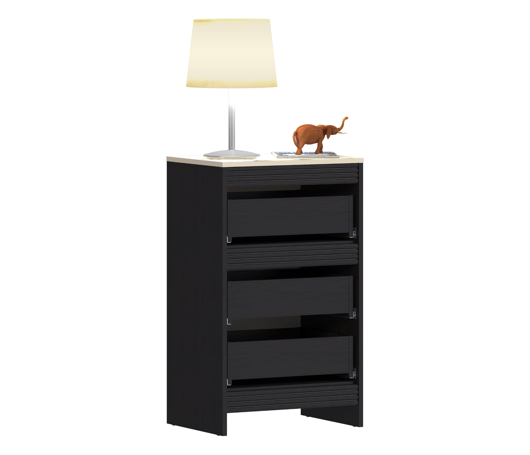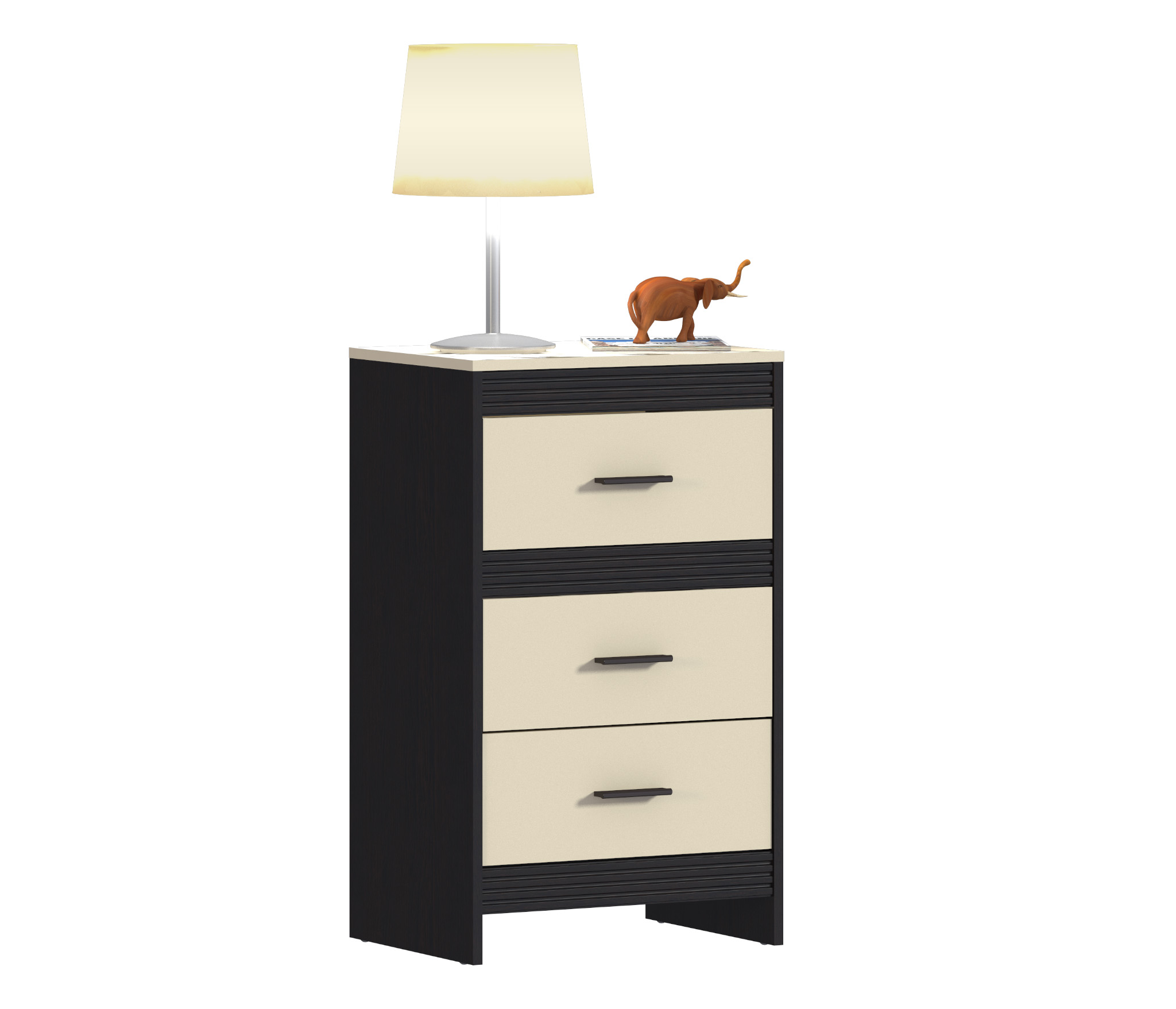 Комод «Дакота» включает в себя три вместительных выдвигающихся ящика, что делает его довольно практичным. Фасады обработаны кромкой АБС. Это экологически чистый и устойчивый к механическим воздействиям материал. Параллельные линии, выполненные с помощью фрезеровки придают комоду большей солидности. Он выгодно впишется в обстановку комнаты, а тёмный корпус «Венге» и фасад ящиков цвета «Ваниль» будет приятно радовать Вас своим дизайном. Благодаря своему небольшому размеру, комод будет идеальным вариантом, если в Вашем распоряжении мало места, но при этом Вам хочется комфорта и удобства.