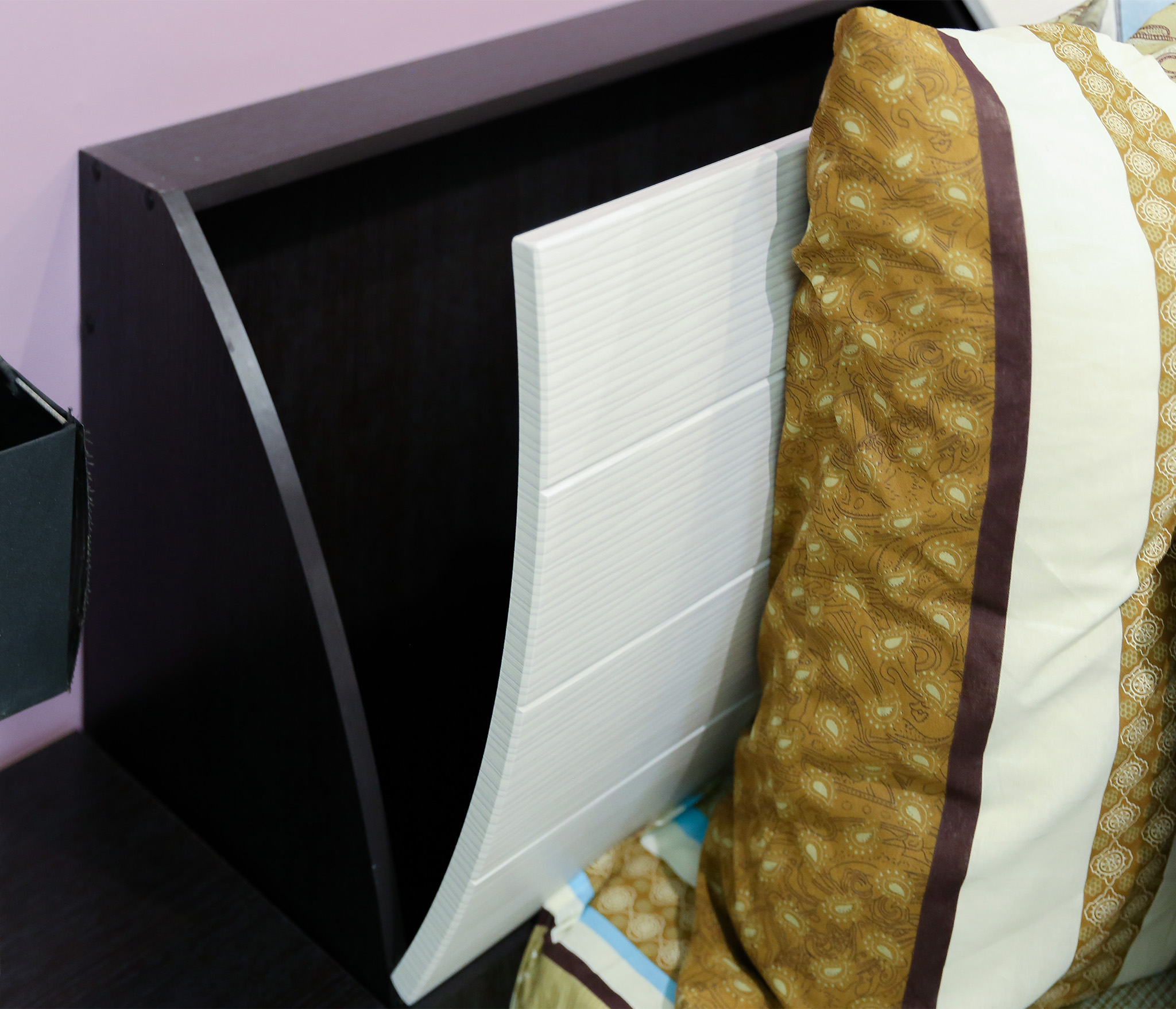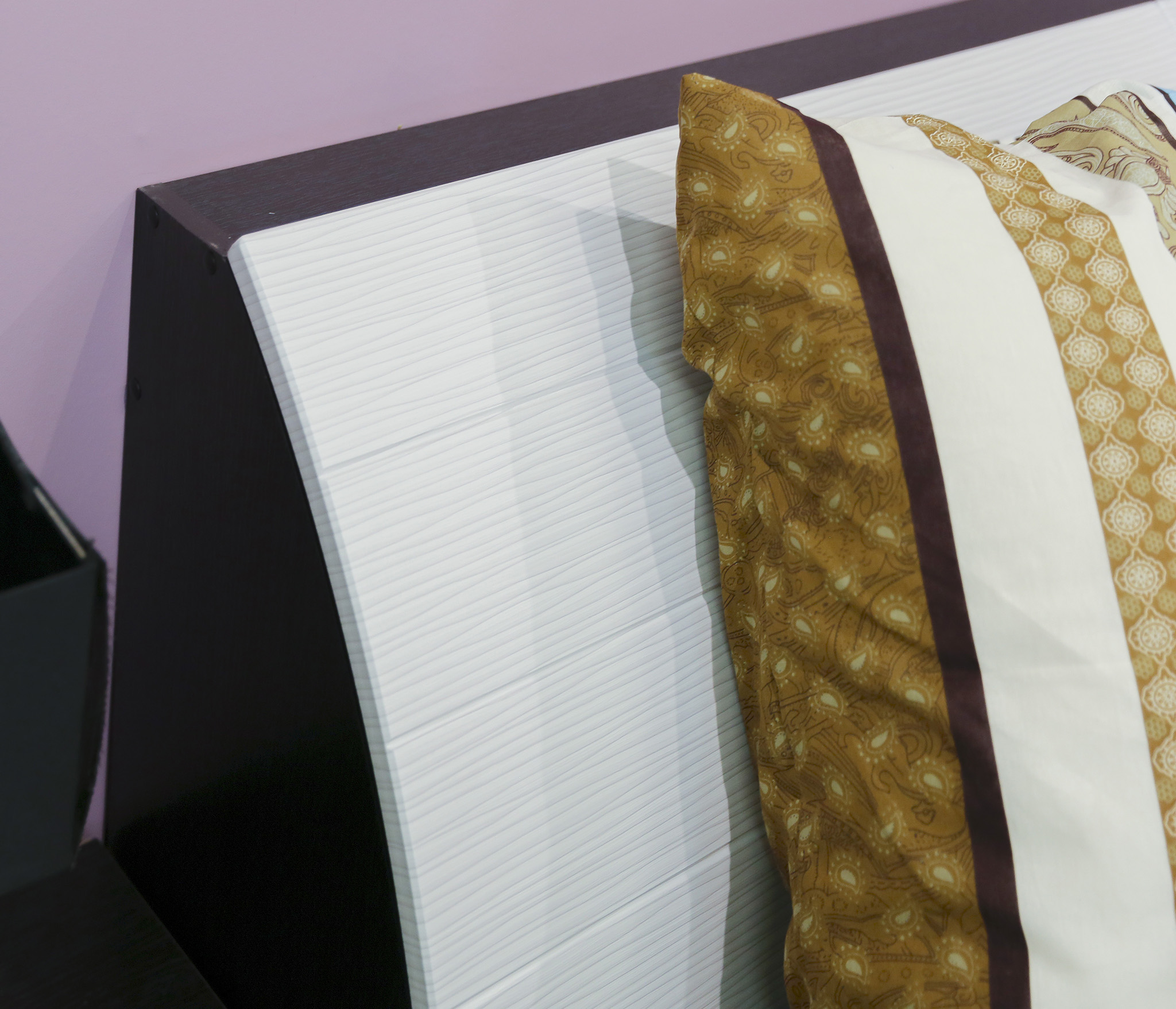 Приобреталась не только кровать, но и угловой шкаф, туалетный столик, тумбы. Мебель отличного качества, смотрится стильно. Очень удобный ящик для белья в изголовье кровати.