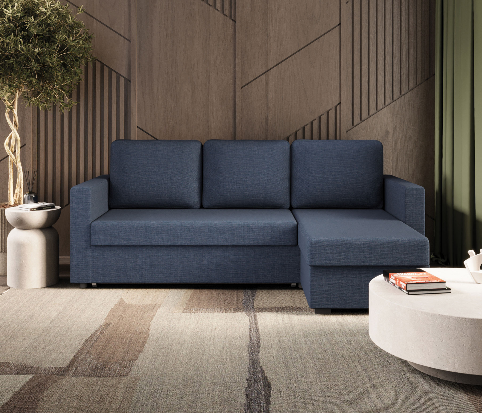 Стильный и практичный угловой диван «Джессика» с выкатным механизмом трансформации «Дельфин» и вместительным бельевым ящиком станет центральным элементом зоны отдыха в интерьере, созданном популярном стиле «скандинавский минимализм», который основан на гармоничном сочетании простоты, практичности, обилия света, комфорта и функциональности. Поэтому здесь нет вычурного декора, а только прямые линии, мягкая, сдержанная цветовая гамма, обивка под «мешковину» и угловая геометрия, позволяющая рационально использовать пространство и исключающая необходимость приобретать дополнительные места для сиденья.