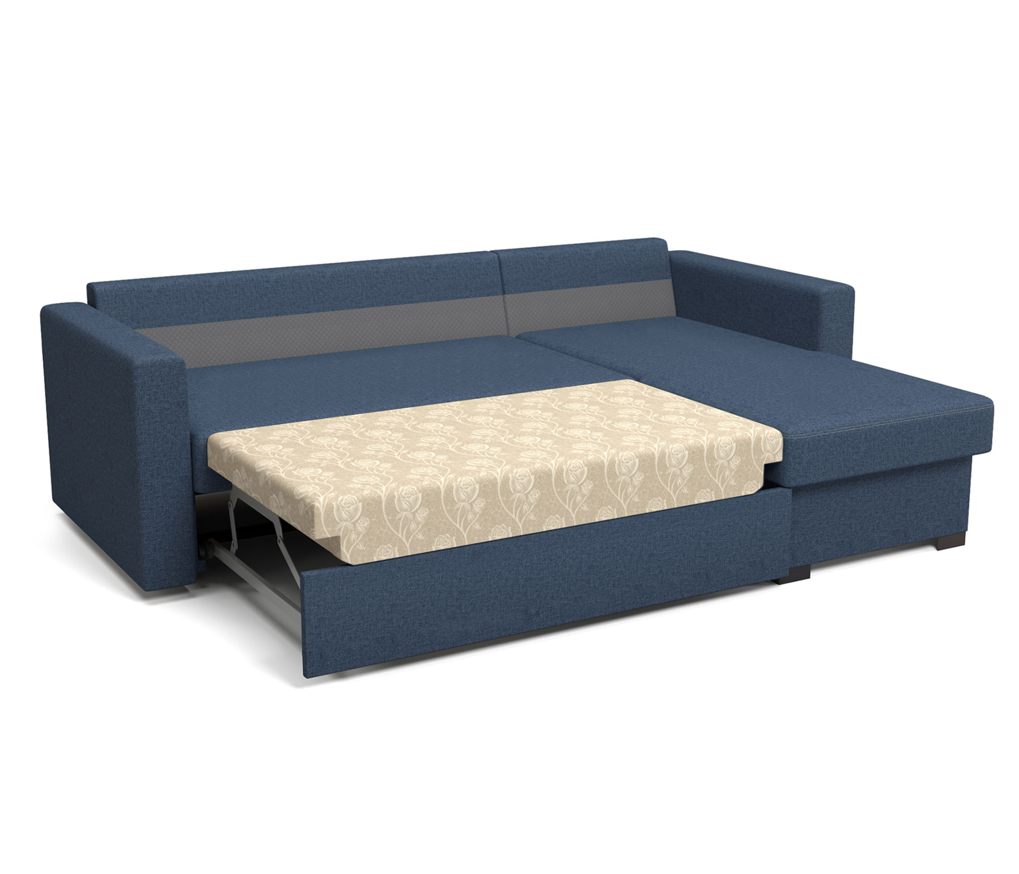 Каркас дивана «Джессика» выполнен из бруса и высокопрочной ЛДСП – ламинированной древесно-стружечной плиты, надежно удерживающей крепежные элементы.Мягкие части модели созданы на основе современного материала ППУ (пенополиуритана), полученного из синтетических полимеров и обработанного антигрибковым и антибактериальным составами. Материал долговечен, экологически безопасен, быстро восстанавливается после смятия, не плесневеет, не впитывает и не выделяет пыль. Обивка из рогожки приятна на ощупь, устойчива к разрывам и истиранию, не мнется, не растягивается и легко чистится.Простоту эксплуатации этого дивана обеспечивает выкатной механизм «Дельфин», позволяющий двумя движениями создать ровное и упругое спальное место размером 1400 х 1900 мм – достаточно выкатить вперед основание, а в освободившуюся нишу опустить спинку. Поэтому можно купить угловой диван «Джесика» для ежедневного пользования, а лаконичный дизайн и нейтральная цветовая гамма снимают ограничения при выборе дополнительных элементов интерьера – журнального столика, кресел, стеллажей и элементов декора.