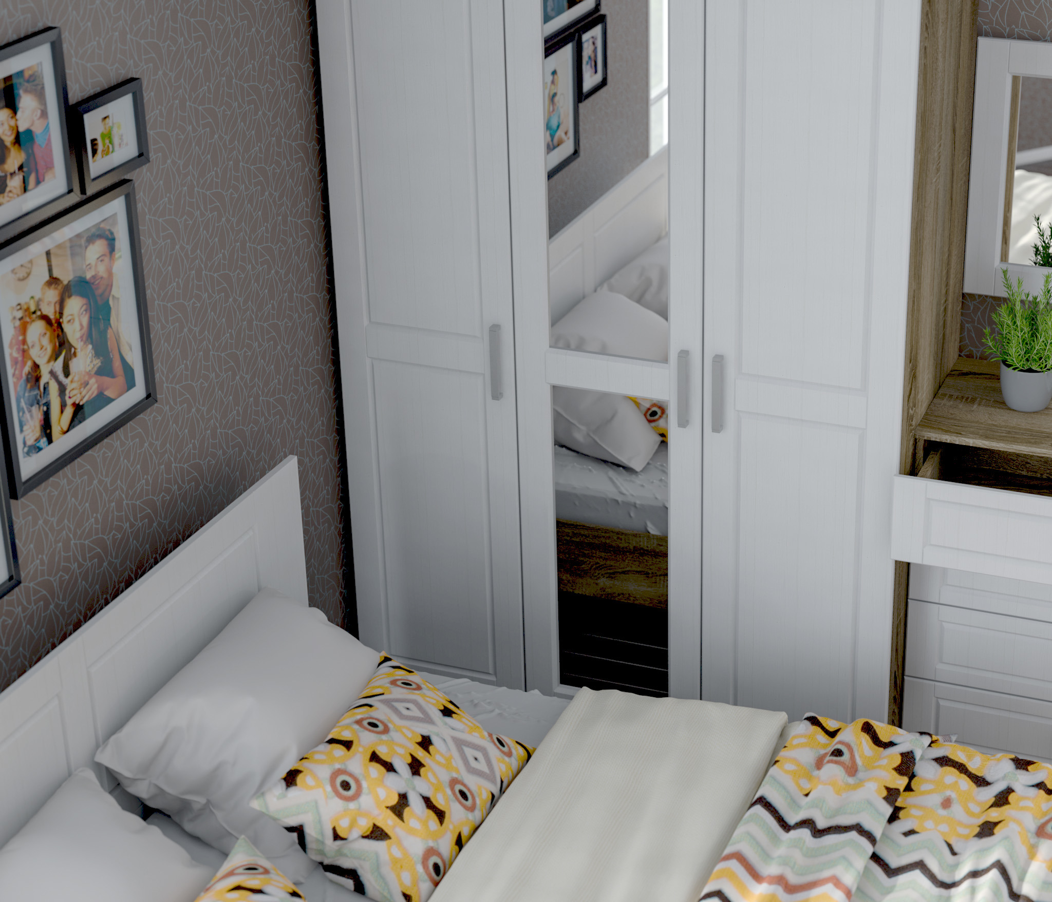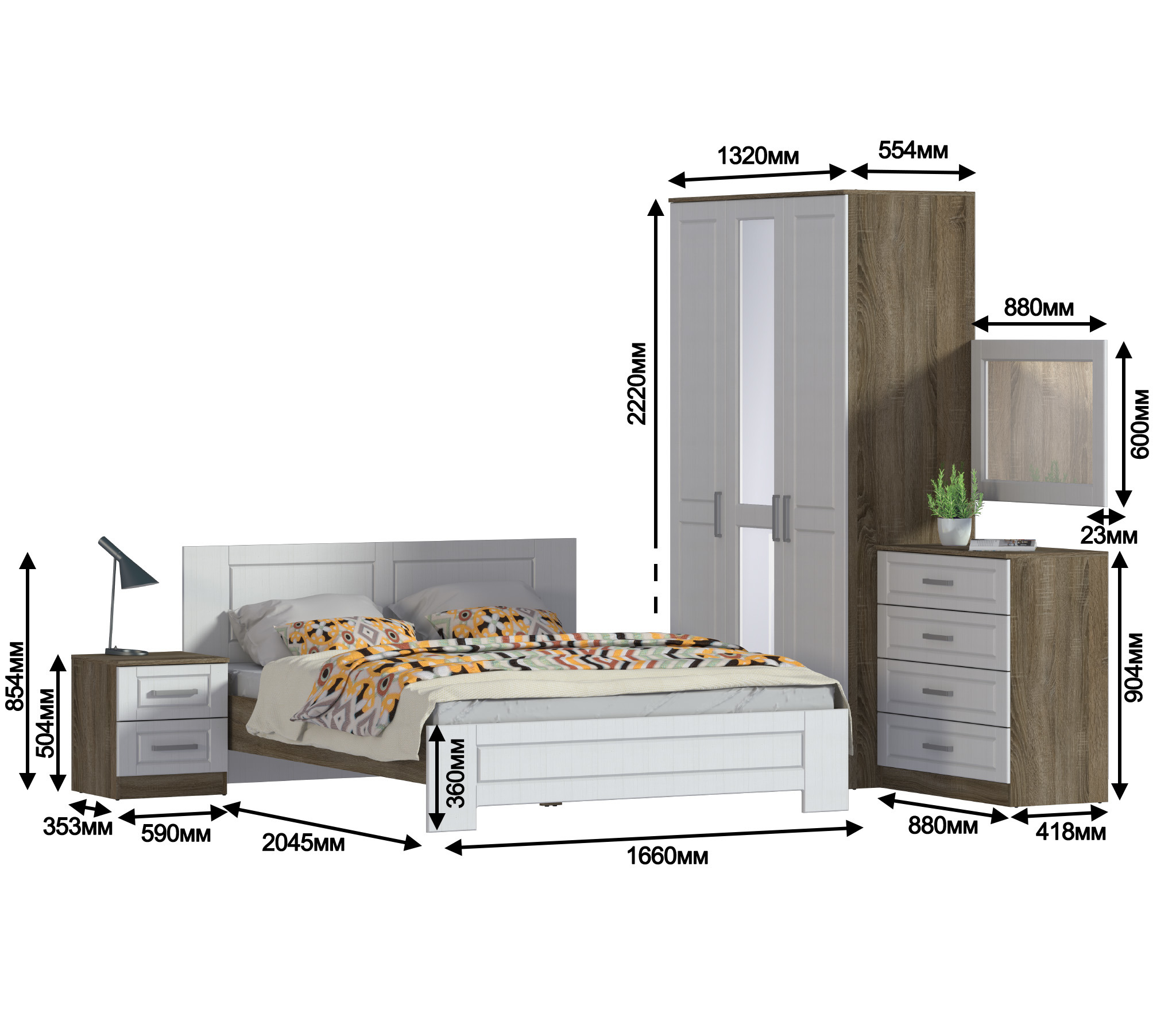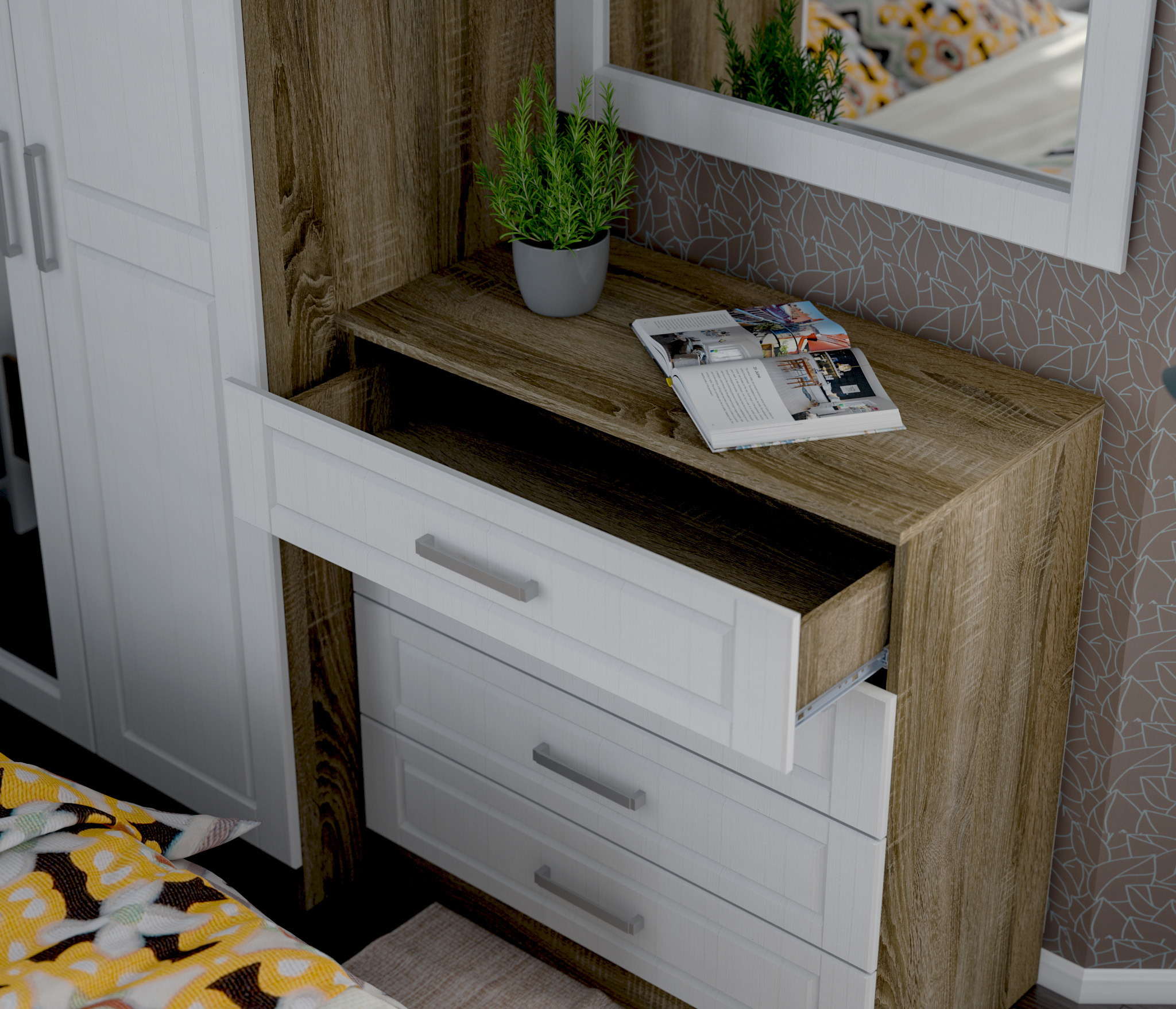Илона СБ-2667 Шкаф 3х дверный с зеркалом Дуб Сонома Трюфель/Сандал БелыйИлона СБ-2671 Комод Дуб Сонома Трюфель/Сандал Белый