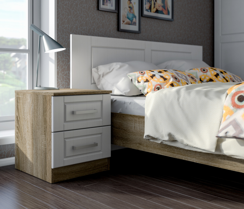 Илона СБ-2673/1 Кровать (1600) Дуб Сонома Трюфель/Сандал Белый