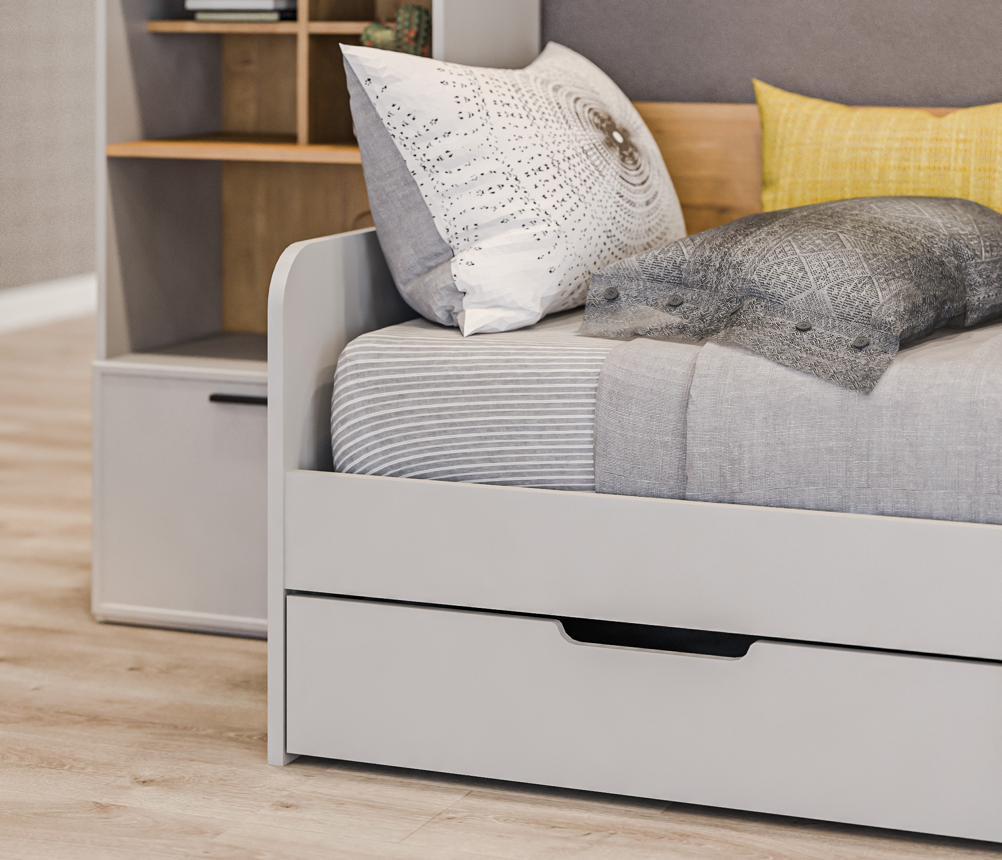 Милан СБ-3298 Ящик для кровати СерыйМилан СБ-3261/1 Стеллаж со столом Серый,Дуб Гамильтон/МДФ Светло серый