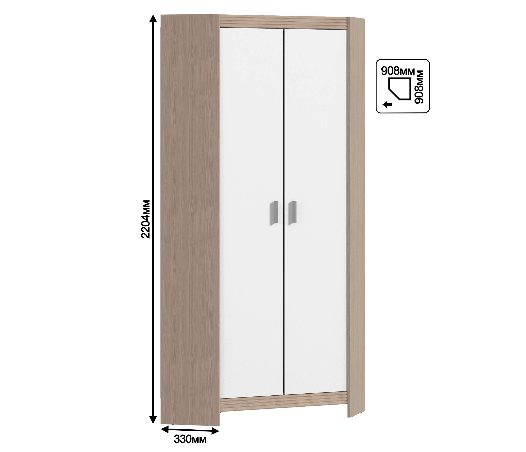В описании указано,что глубина 90,8,а на самом деле глубина шкафа 33 см,из-за этого шкаф не встал,как планировали,в плотную с прямым шкафом