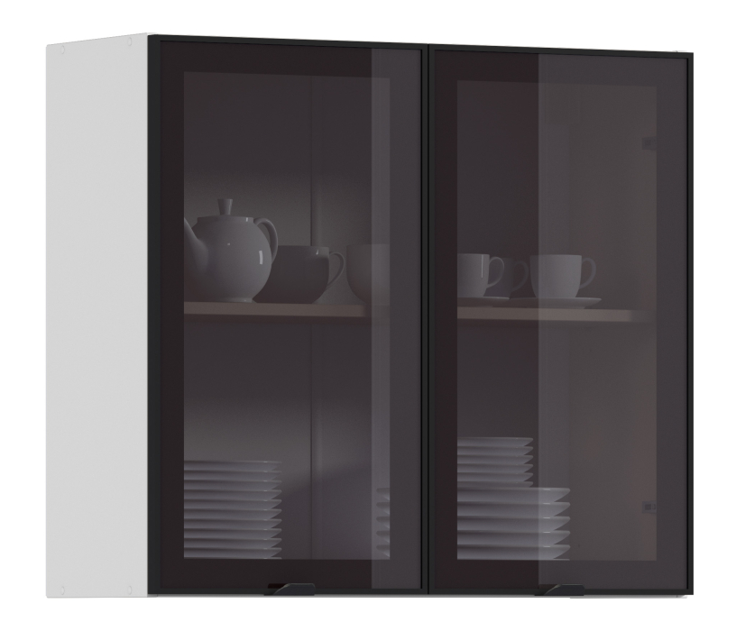 Регина РП-80 Полка Белый/Витрина алюминий Черный матовый/стекло Бронза (Черный/ Белый)