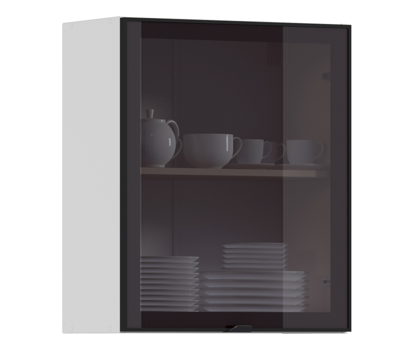 Регина РП-60 Полка Белый/Витрина алюминий Черный матовый/стекло Бронза (Черный/ Белый)