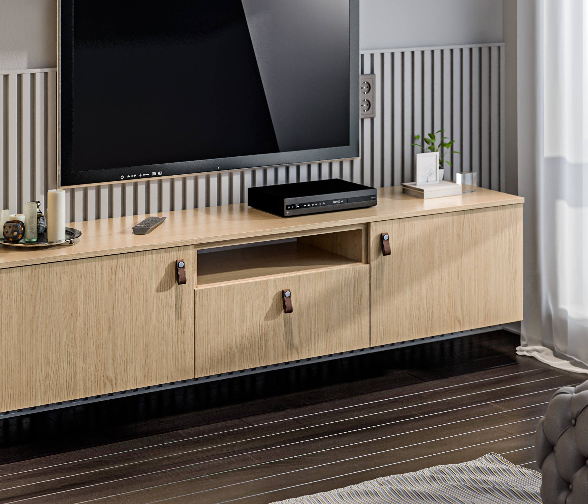 Ножки для модульной системы "ТРЕНД" выбираются дополнительно, данная гостиная предусматривает настенное крепление, что создает элегантный и минималистичный внешний вид и облегчает процесс уборки, особенно при использовании робота-пылесоса.