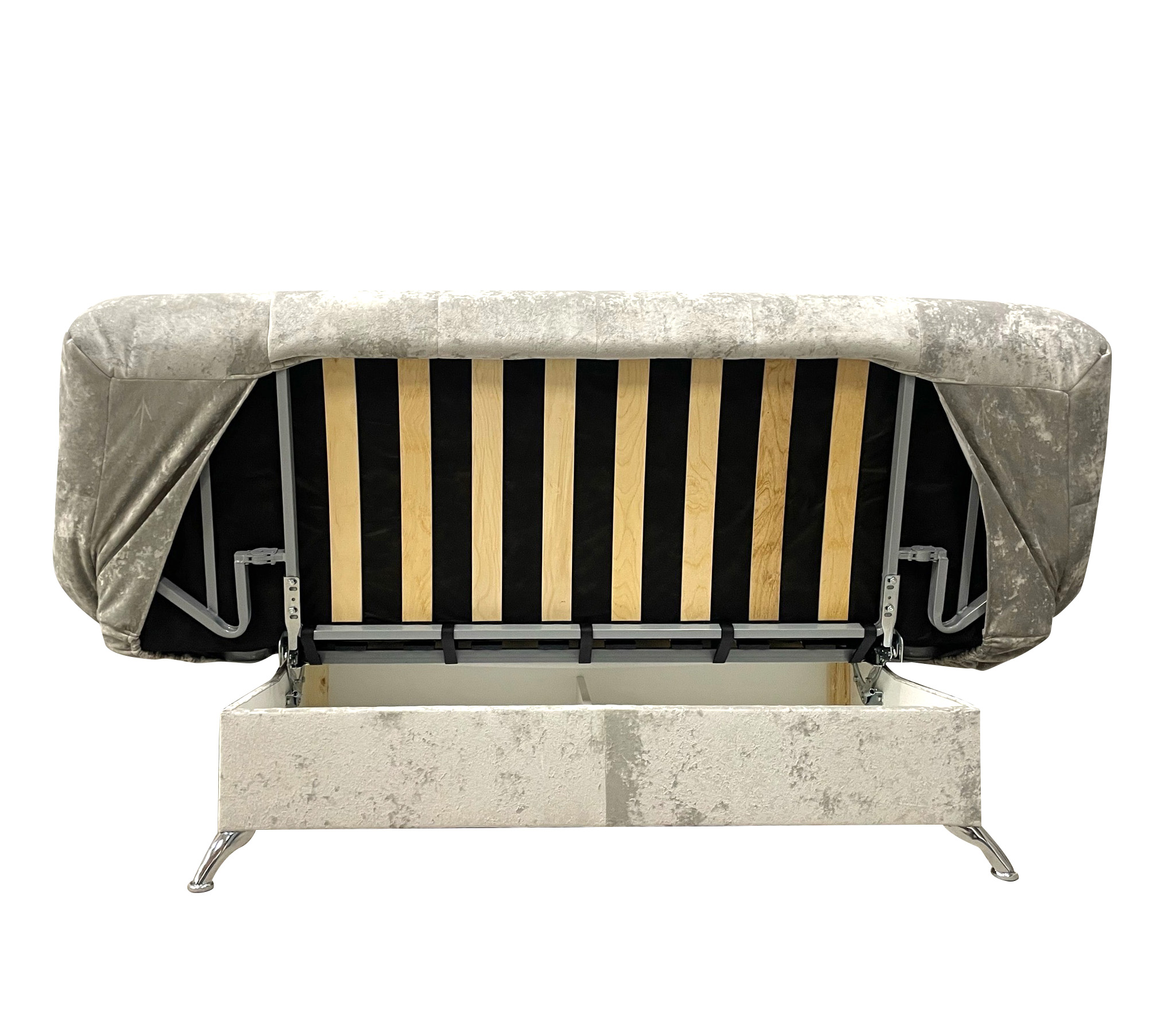 Диван клик-кляк выделяется практичностью и комфортабельностью, поэтому он пользуется большой популярностью у покупателей. Фурнитура, работающая на данном механизме отличается удобством трансформации и имеет три положения спинки: лежа, полусидя и сидя. Название мебели дали за щелчки при трансформации.