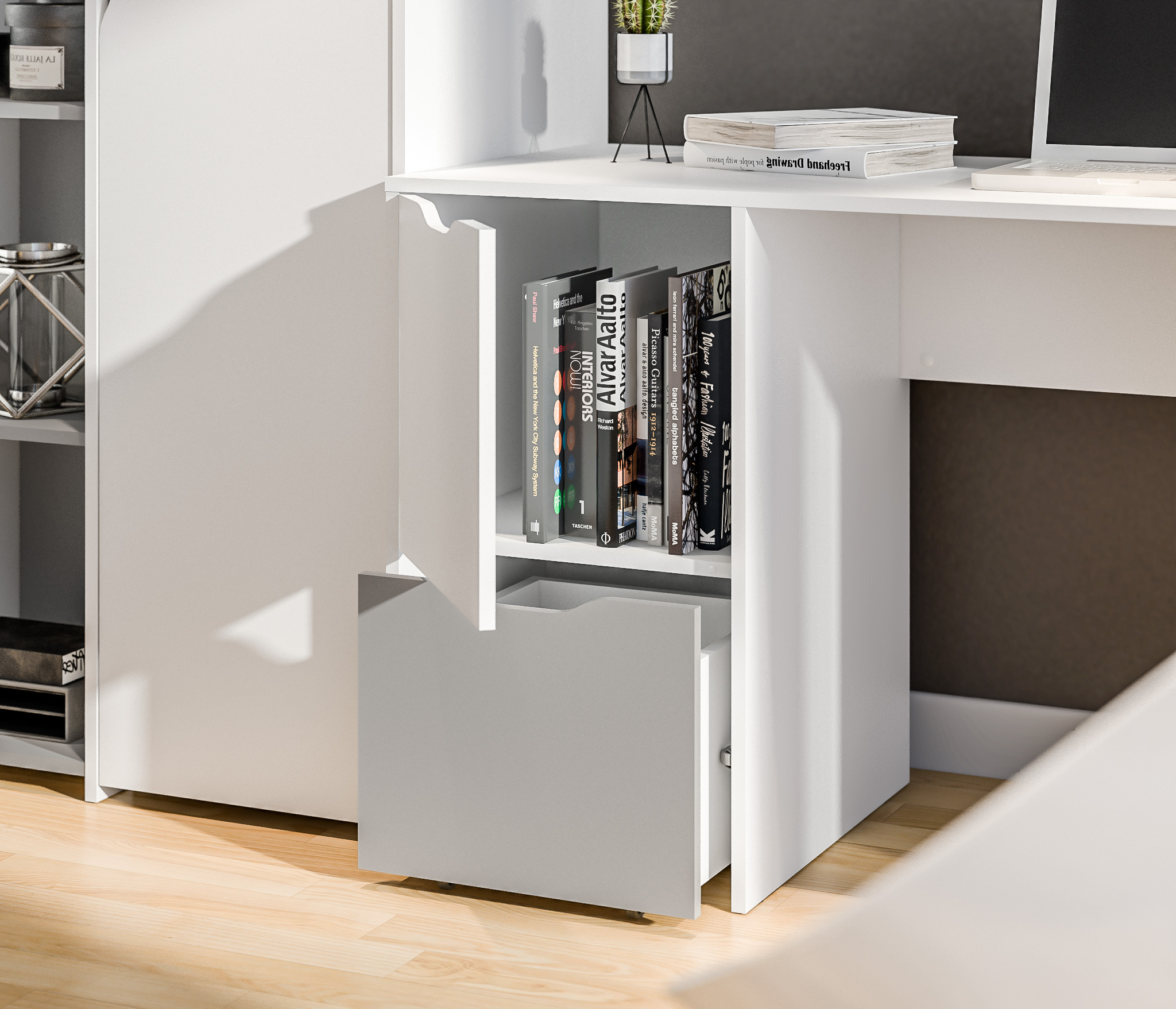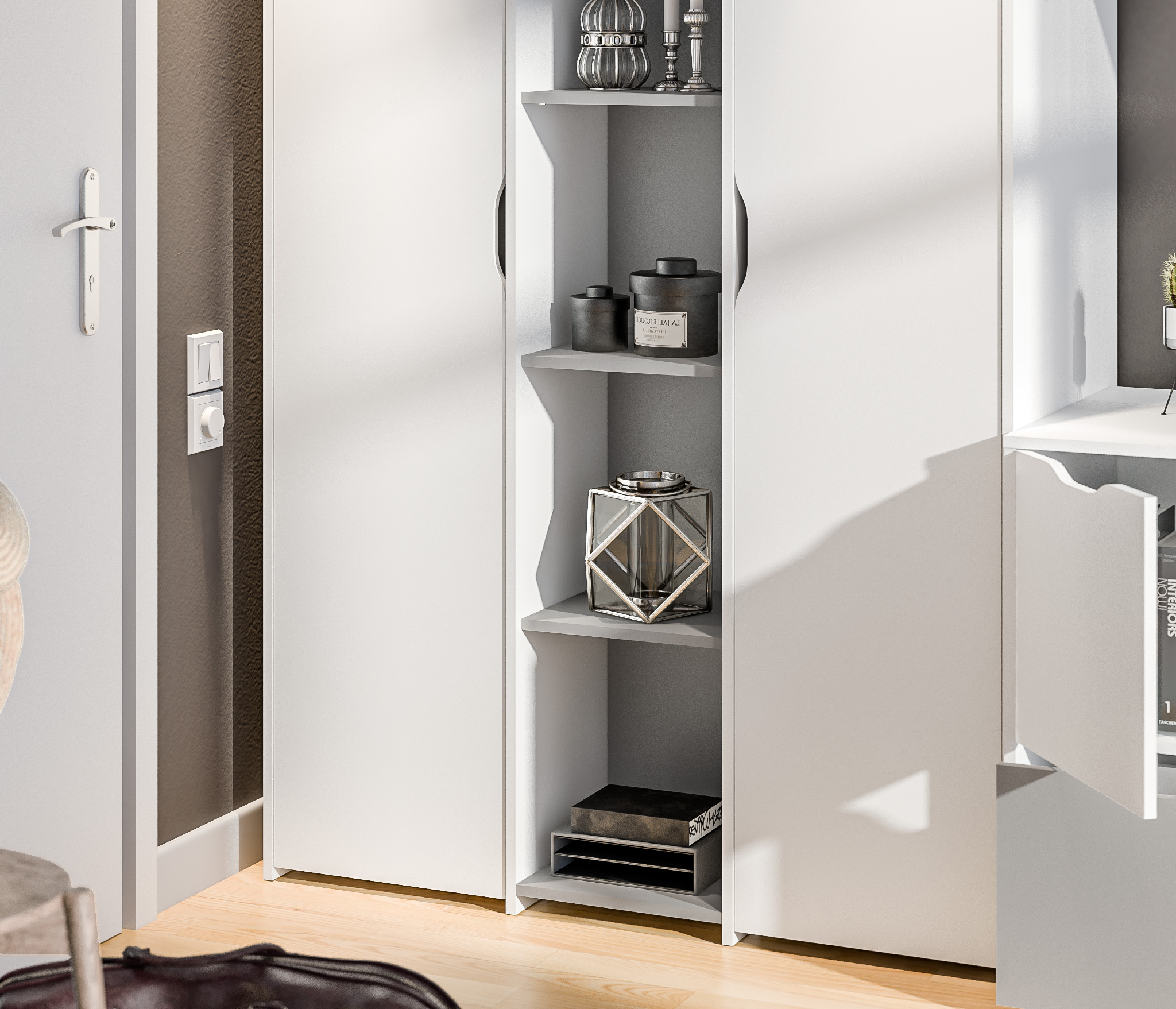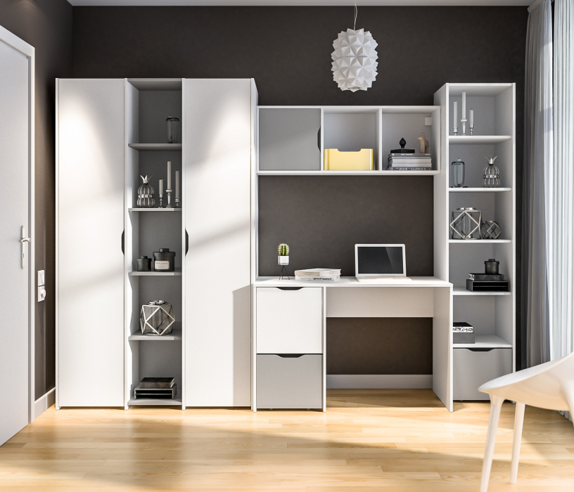 Mika СБ-3273 Шкаф 2 дверный Белый,Серый/БелыйMika СБ-3275 Стеллаж Белый/Серый