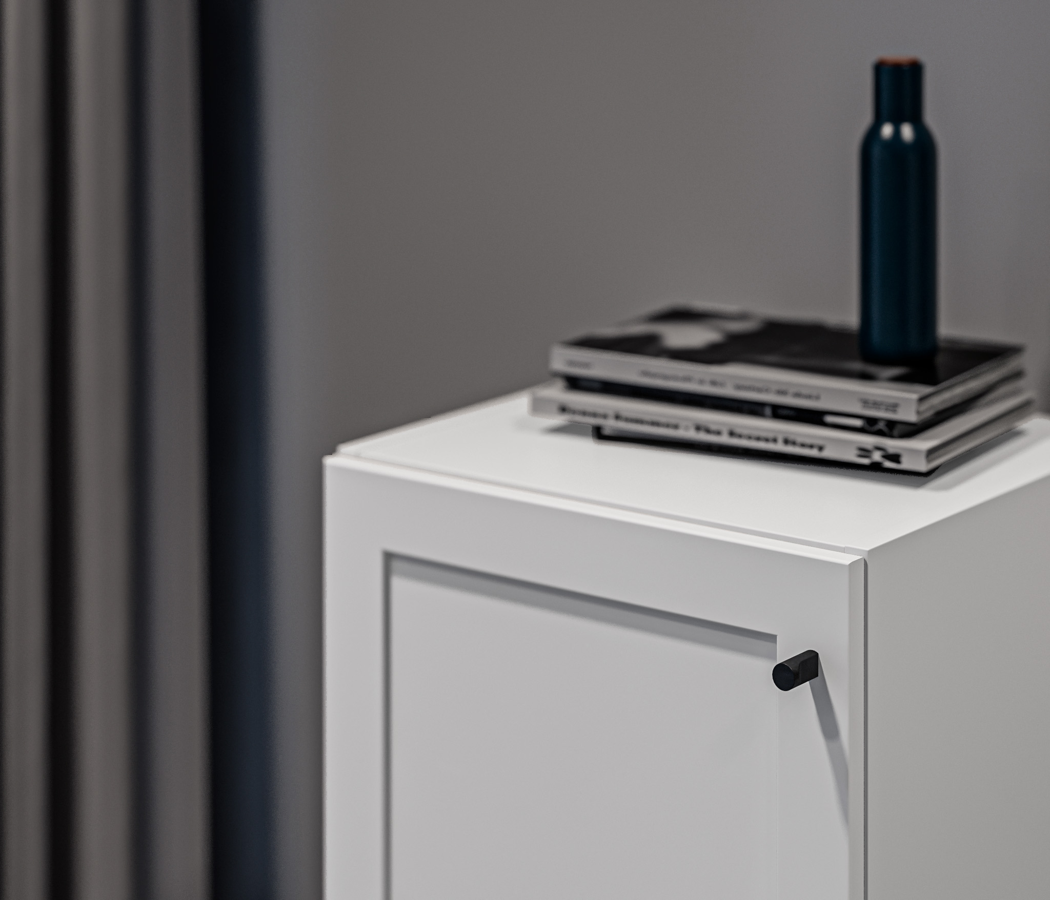 МС Твин предоставляет возможность собрать шкаф или стеллаж по своему вкусу. Вы сами выбираете размеры, цвет ручек: белый или черный, наполнение: ящик или полки. Помимо этого, вы можете решить, оставить фасады глухими или выбрать стеклянные, чтобы добавить прозрачности и легкости в ваш интерьер. Создайте шкаф-стеллаж, который идеально подходит для ваших потребностей и вписывается в ваш стиль.