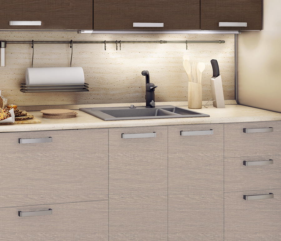 Отличная кухня, удобная, лаконичная. Брала темный низ и светлый(как на картинке) верх, гармонично и очень уютно смотрится. Не напрягает вообще.