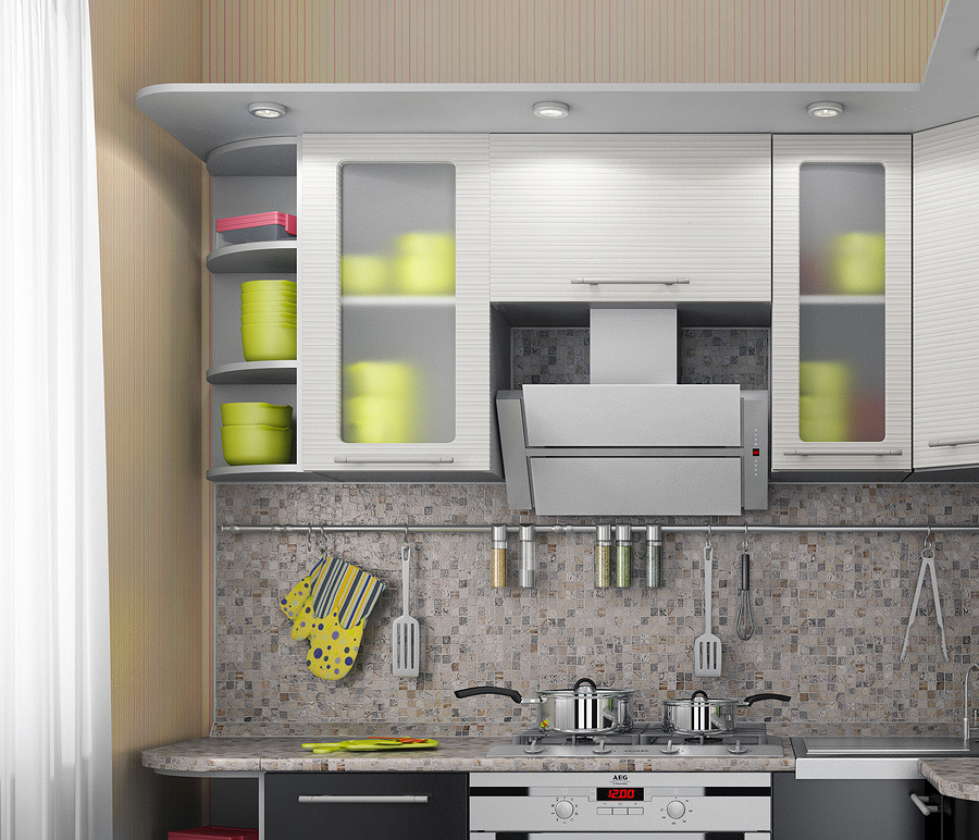 Гарнитур «Анна» позволяет играть на контрастах. Расставьте на вместительных полках яркую посуду и наслаждайтесь получившимся эффектом. Функциональность еще никогда не выглядела так хорошо. Столовые приборы, тарелки, чашки, чаи, специи – все займет положенное ему место. Закажите кухонный гарнитур «Анна» – готовьте с удовольствием!